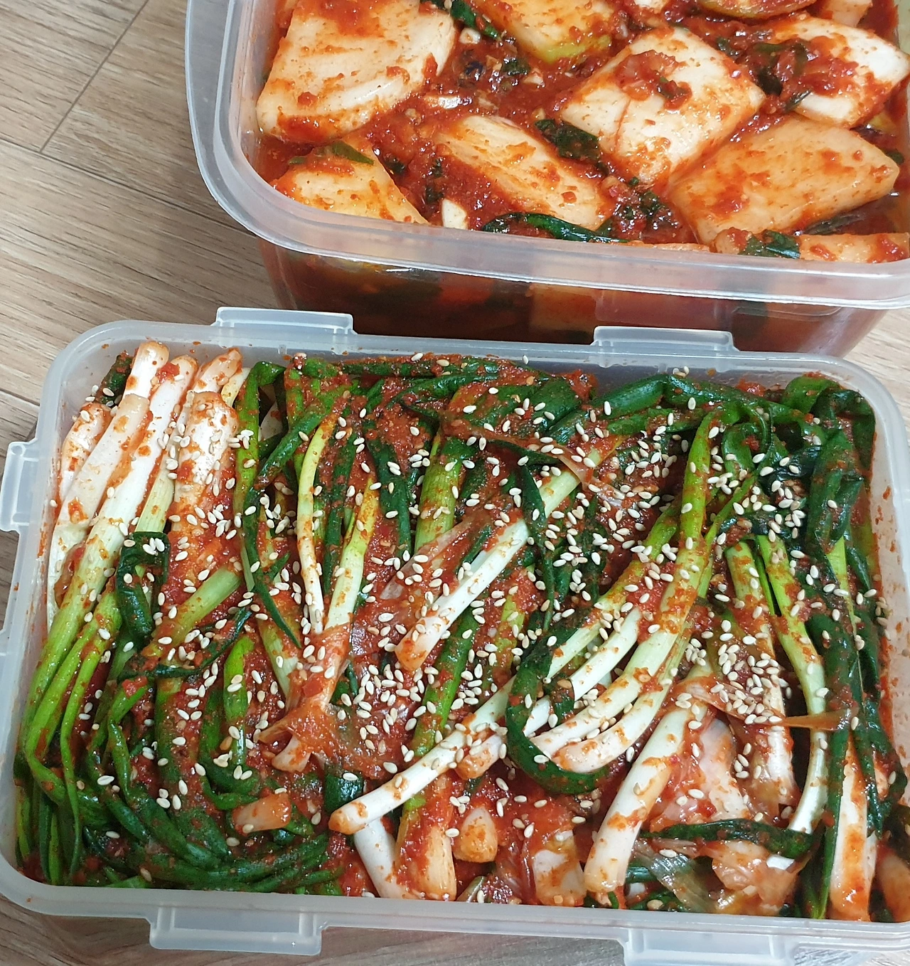 파란 녀석 음식의 맛을 살려내는 재주도 좋고, 얼마나 쉬운지 파김치는 마늘이며 다른 김치 속재료들이 들어가지 않아도 맛이 난다. 맛난 젓갈만 있으면 대충 버무려놔도 된다. 풀을 쒀 놓고, 얼마나 묵었는지도 모르는 매실청에, 추자도 멸치액젓(딱히, 추자도를 좋아하는 건 아니지만 상표에 쓰여있다^^ 국이며 나물, 김치며 오만 곳에 다 넣어 먹는 좋아하는 젓갈이다)을 넣어 고춧가루를 풀어 걸쭉한 양념장을 만들어 깨만 넣으면 준비 끝. 씻어 물 빠진 파를 한 줌 평평히 깔고 그 위에 양념장을 한 층 한 층 쌓아가며 펴 발라주면 버무릴 필요도 없다. 몇 시간이 지나 숨이 죽으면 맨 위에서부터 김치통에 옮겨 담는다. 자연히 뒤집기가 되고 익기를 기다리면 된다. 양파를 갈던지 기타 부수적인 것들을 첨가하면 더 맛나겠지만 이렇게만 해놔도 맛을 내니 수월하고 단순 맛들어진 녀석이다.