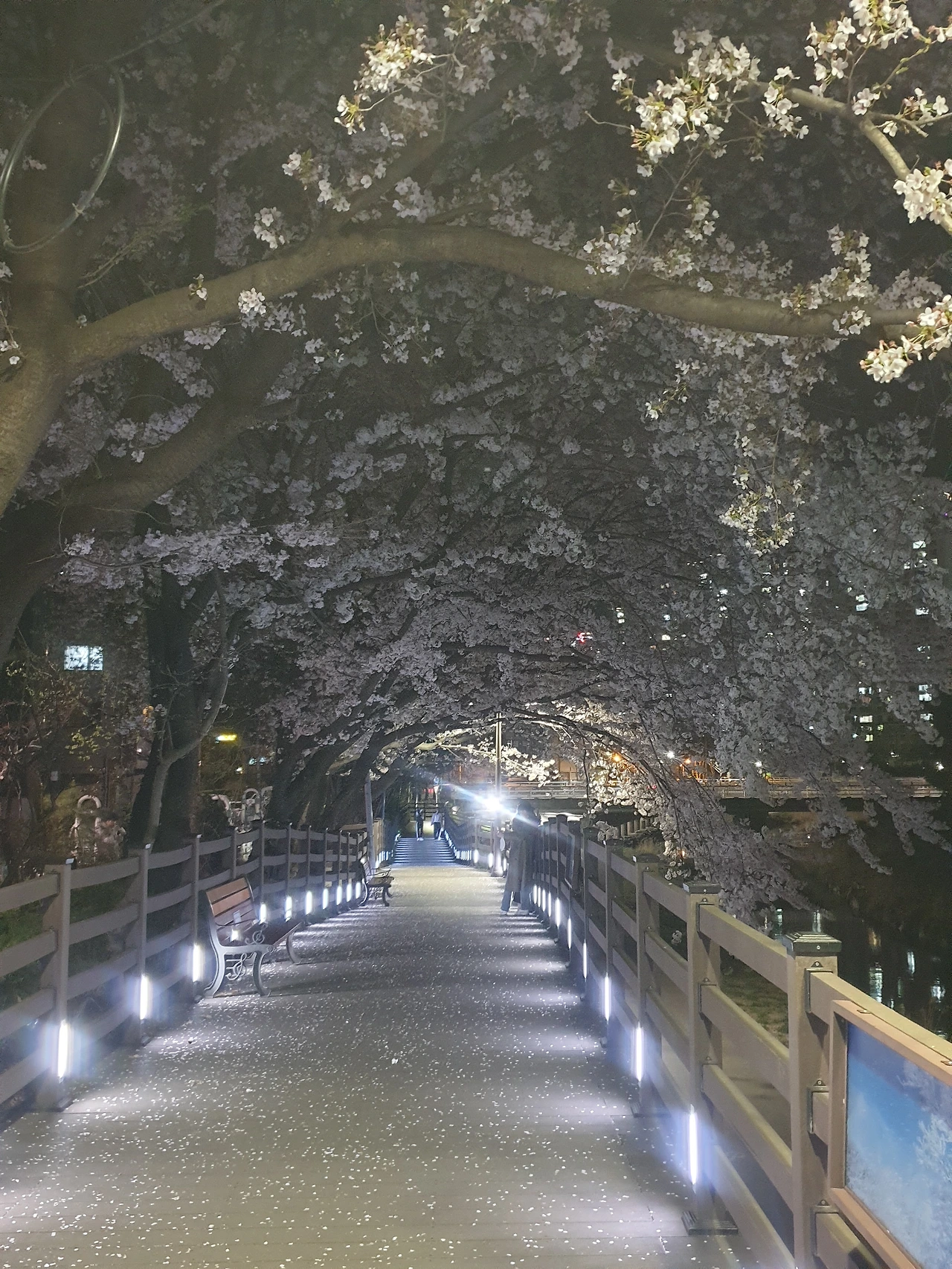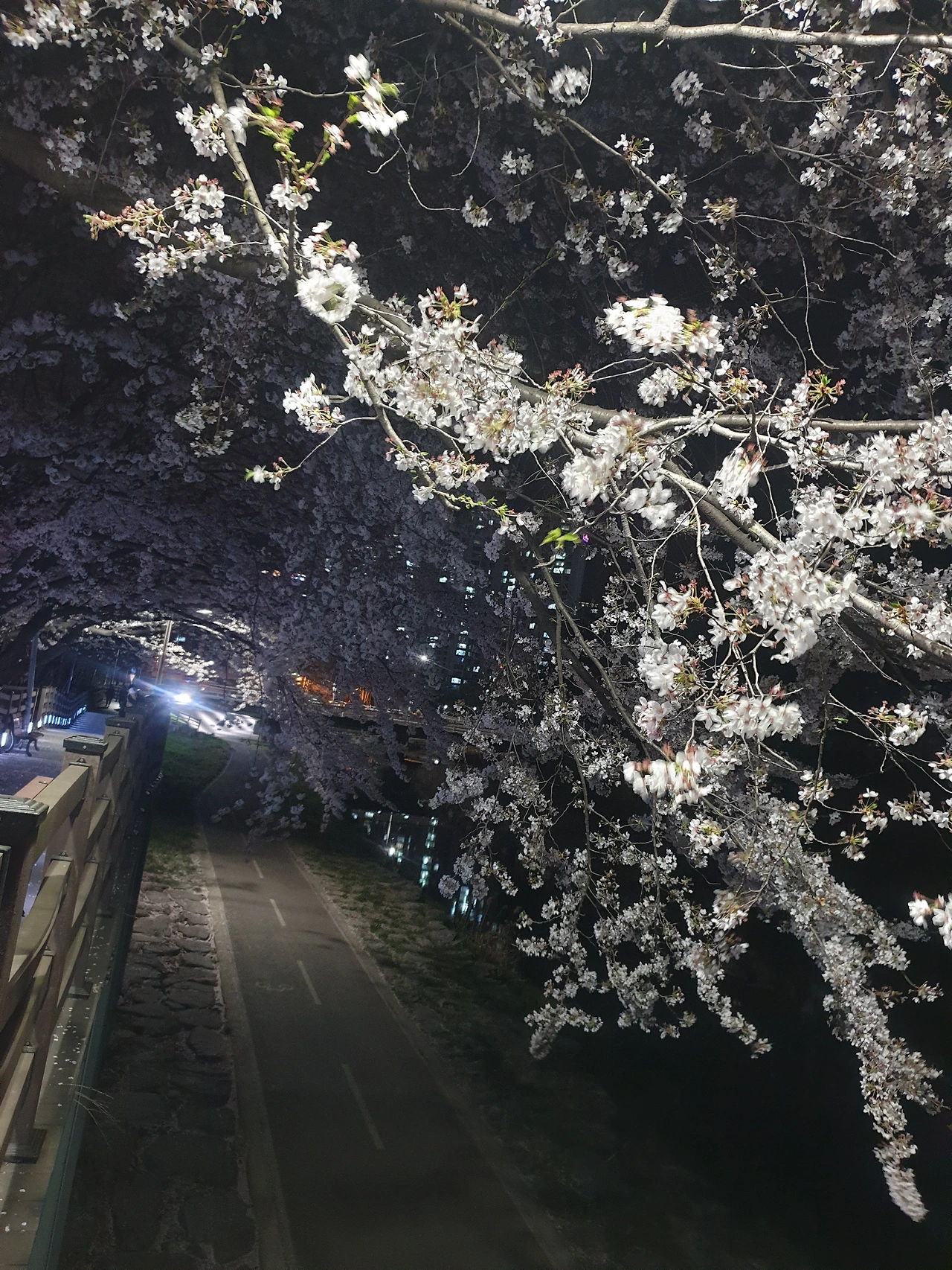 어느 한 가지로 손꼽을 수 없는 박빙이겠지만, 짧은 봄날 밤마실에 가로등 불빛 아래 만나는 벚꽃이야말로 황홀경에 빠지게 한다.