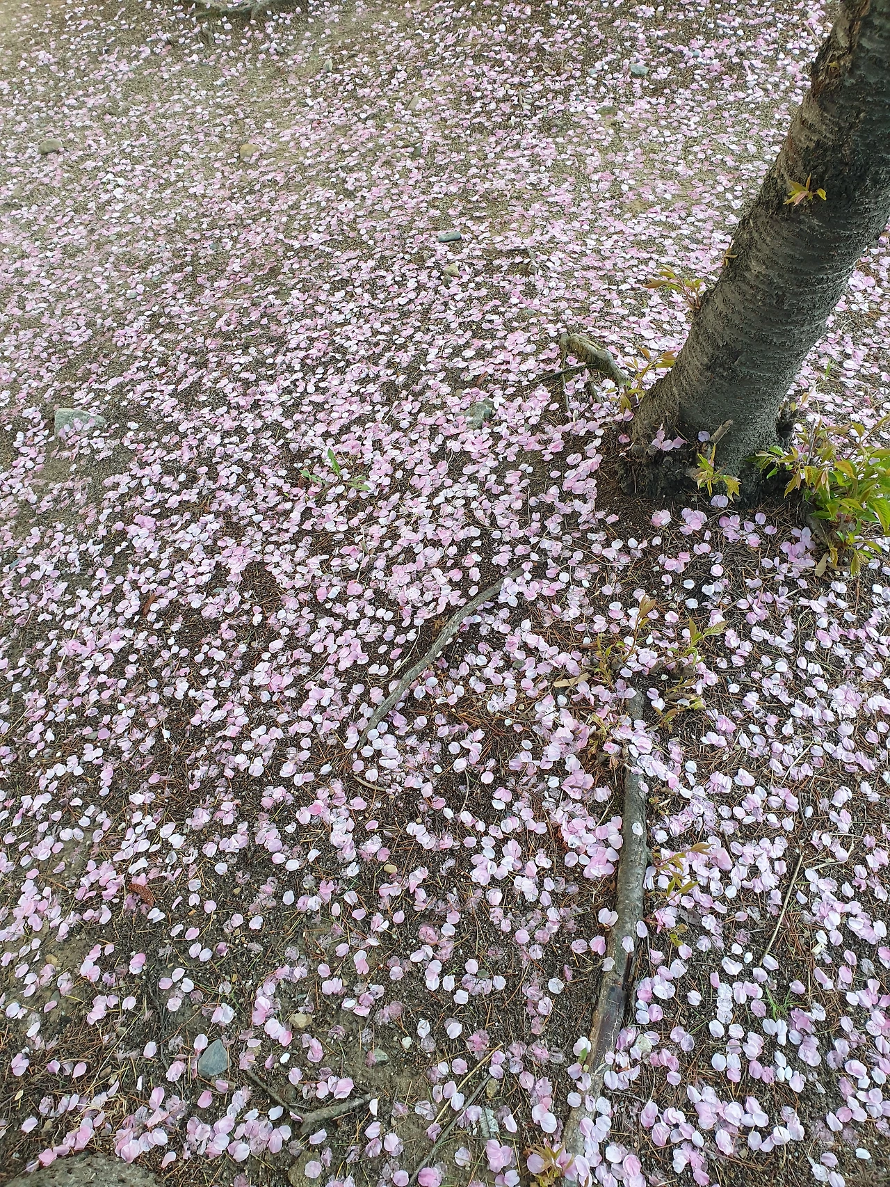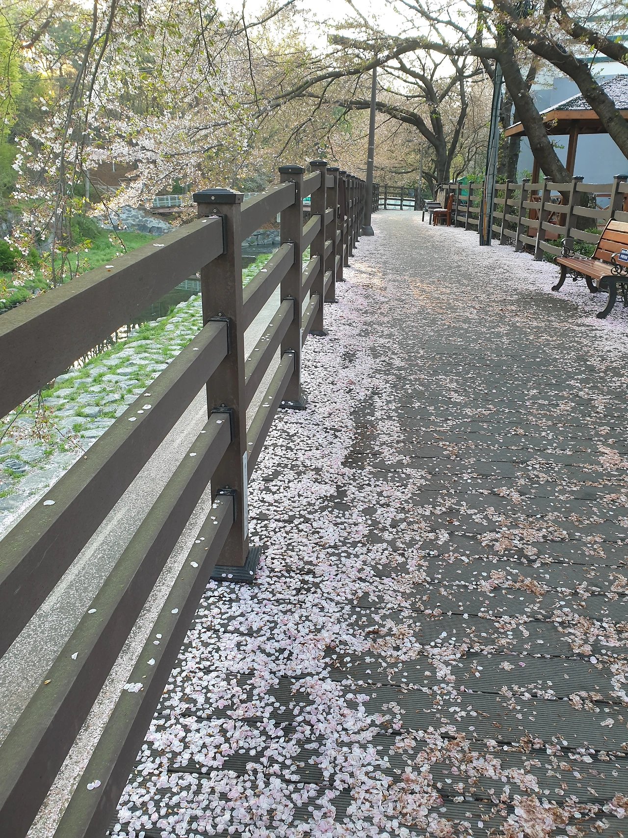 떨어져 힘없이 뒹구는 꽃잎이 날 닮은 듯하여 쓸쓸해진다. 오늘 진다 해도 그대는 다음 봄을 기약할 수 있지 않은가.
