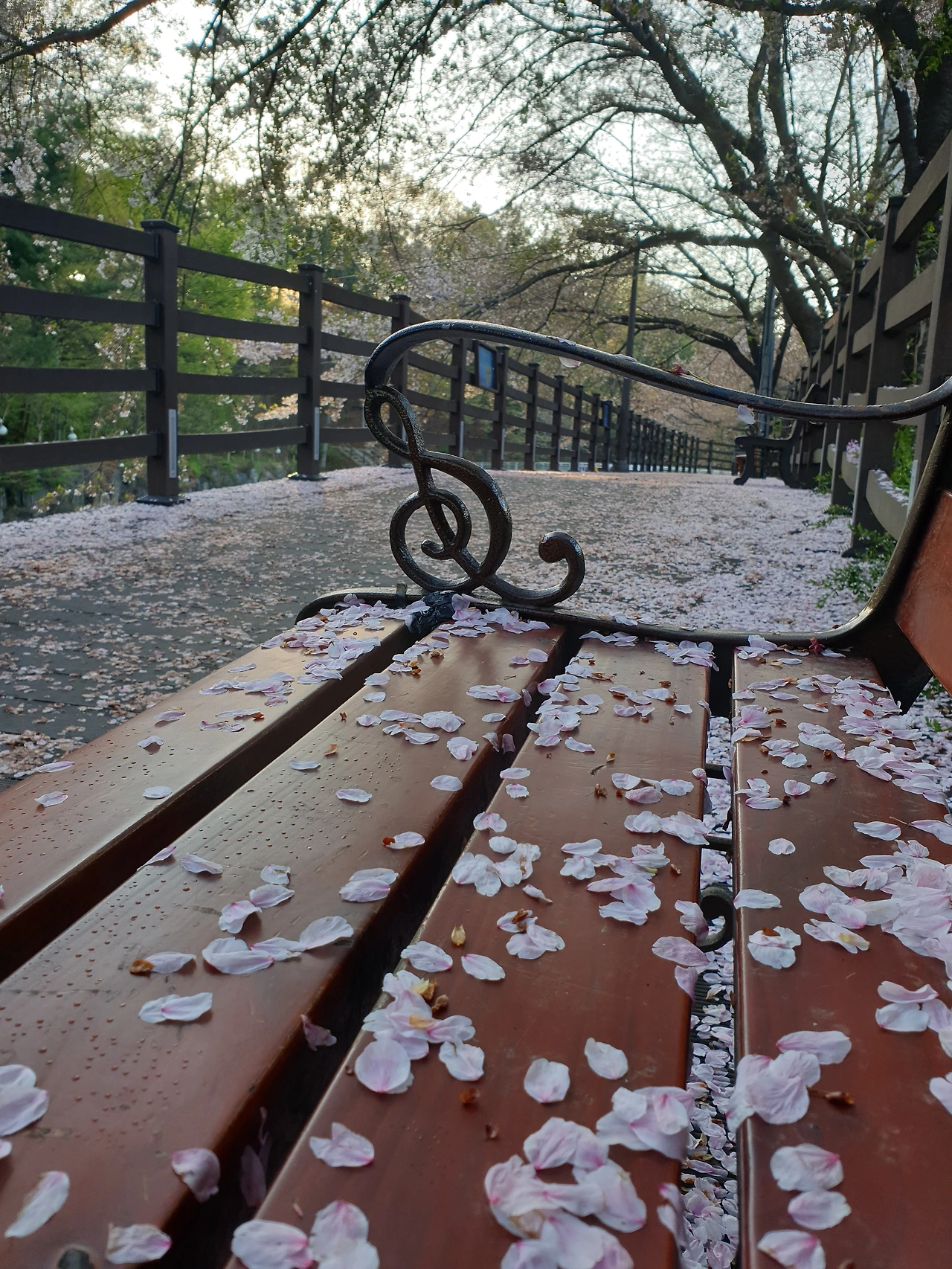 꽃구경 나온 사람들로 혼잡한 시간을 피해 이른 시간이나, 늦은 밤에 산책을 나간다.