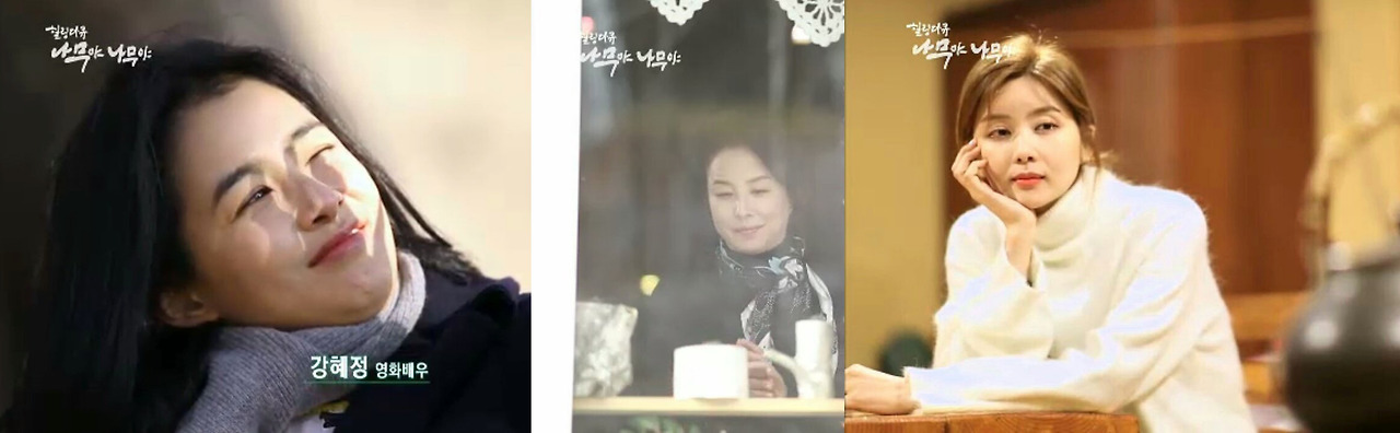 중견배우 3인.. 제1부 강혜정의 포항 덕동마을 소나무 숲, 제2부 이미숙의 횡성 자작나무 숲, 제3부 박솔미의 홍천 은행나무숲.. 3곳의 나무숲에 대한 가장 나무적인 요소에 입각한 타이틀 서체를 써달라는 이야기였다.
