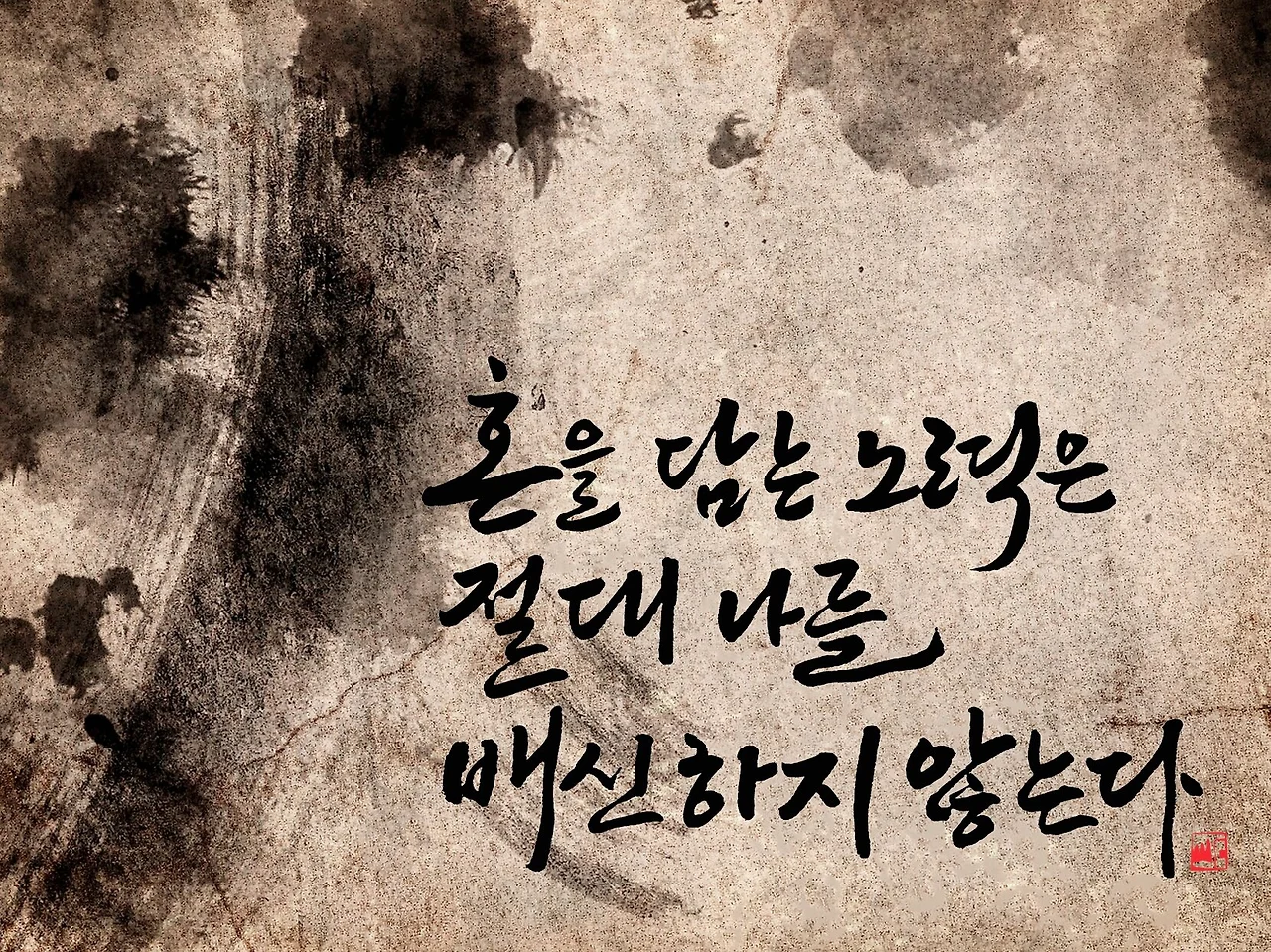 어찌 되었던 나 또한 TV를 통해 ‘혼을 담는 노력은 절대 나를 배신하지 않는다’라는 말을 알게 되었고, 글씨에도 ‘혼을 담는’ 노력이 필요하다는 것을 늘 몸에 배어 있어서인지 글씨로 표현하면 어떨까? 싶은 생각으로 쓰게 되었다.