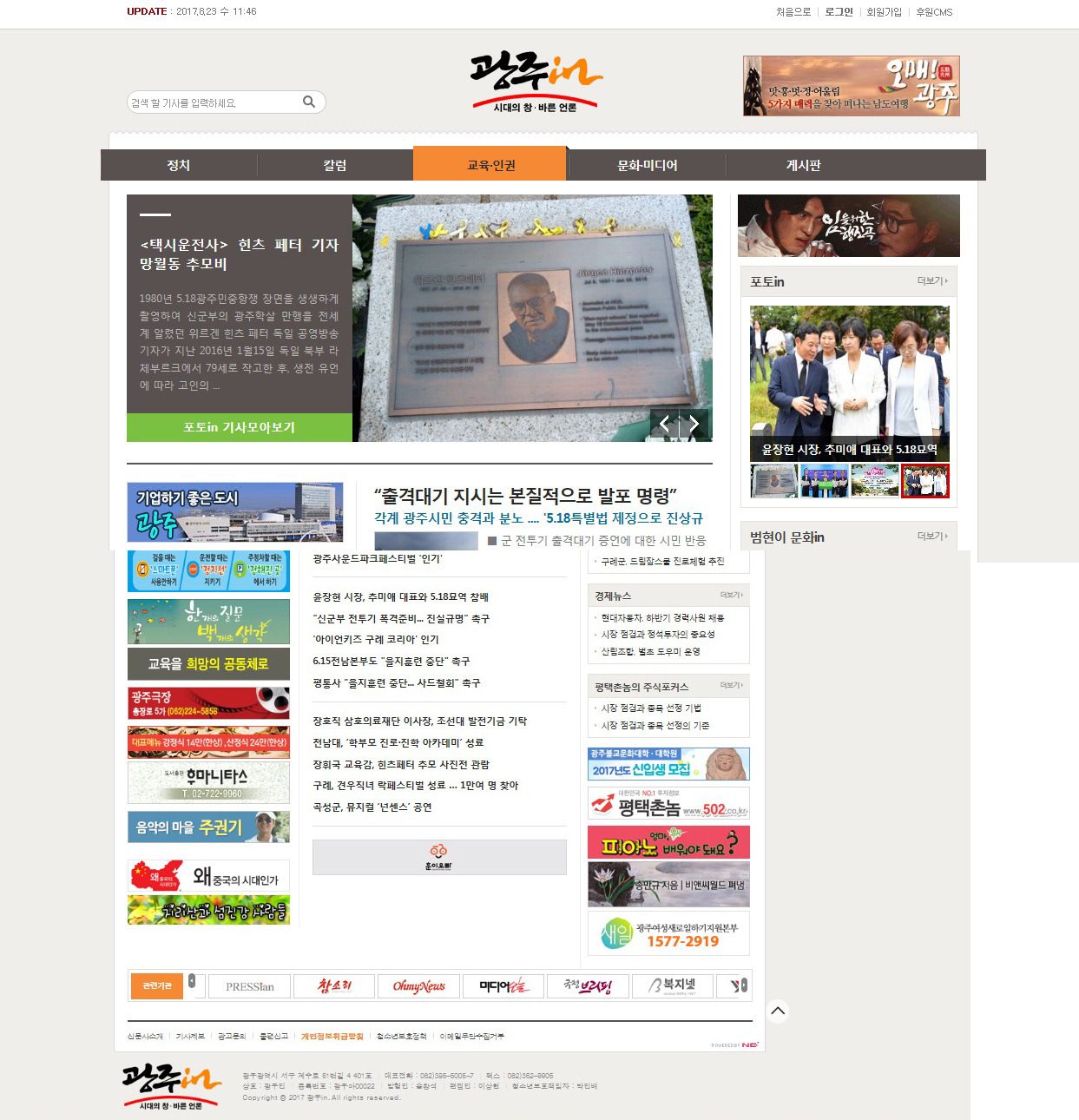 광주 in은 ‘무등산 노무현길’, ‘문재인 대통령 대선 기간 중 ’ 나라를 나라답게 ‘ 휘호 전달에 이르기까지 본인의 행보를 심층적으로 기사화해 준 인연으로 좋은 인간관계를 유지하고 있다.