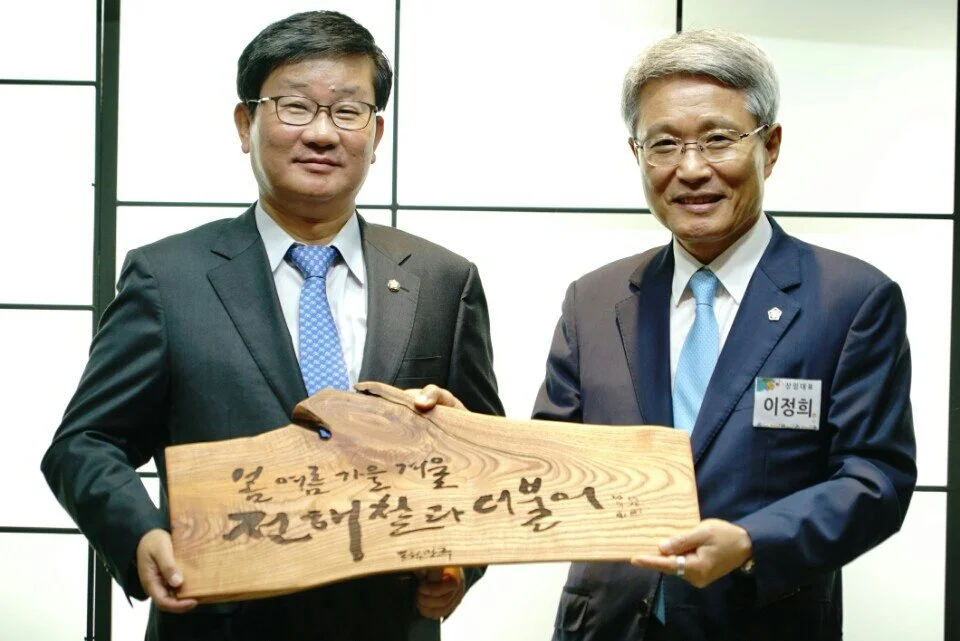 그 후, 2017년 9월 8일 광주 치평동에서 열린 포럼 광주 초청 특강 ‘문재인 정부의 성공과 호남의 역할’이라는 주제로 문재인 3철중 한 분인 전해철 의원의 특강이 끝나고 '봄 여름 가을 겨울 전해철과 더불어‘ 서각작품을 건내주는 자리를 마련 하였다.