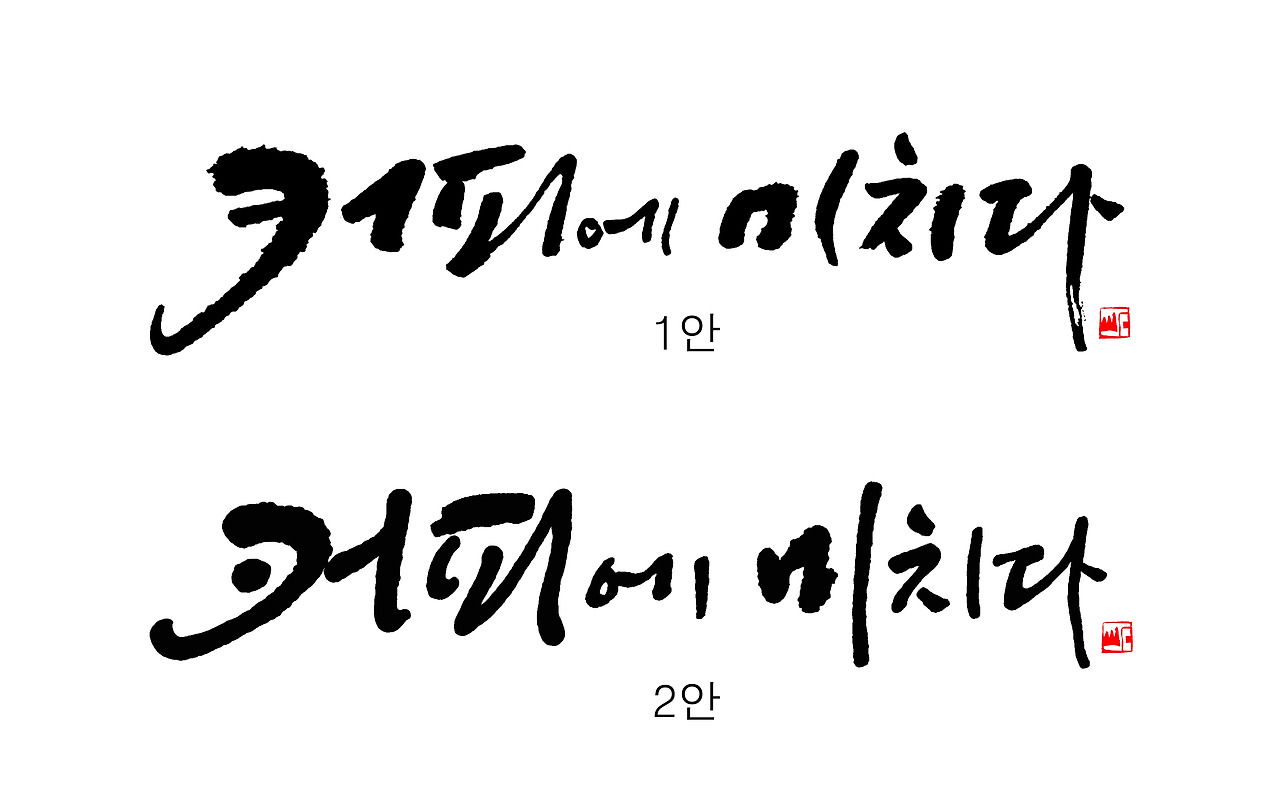 ‘미(味) 친’, ‘열정’, ‘역사성’, ‘섬세한 커피 맛의 차이’..., 1차적으로 ‘섬세한 커피 맛’에 주안점을 작업했다. 1차 시안에서는 1안과 2 안중 2안이 마음에 들어했으나, 불광불급(不狂不及)에 조금 더 포커스를 더해달라는 주문이 있어 다시 2차 수정 작업에 돌입했다.