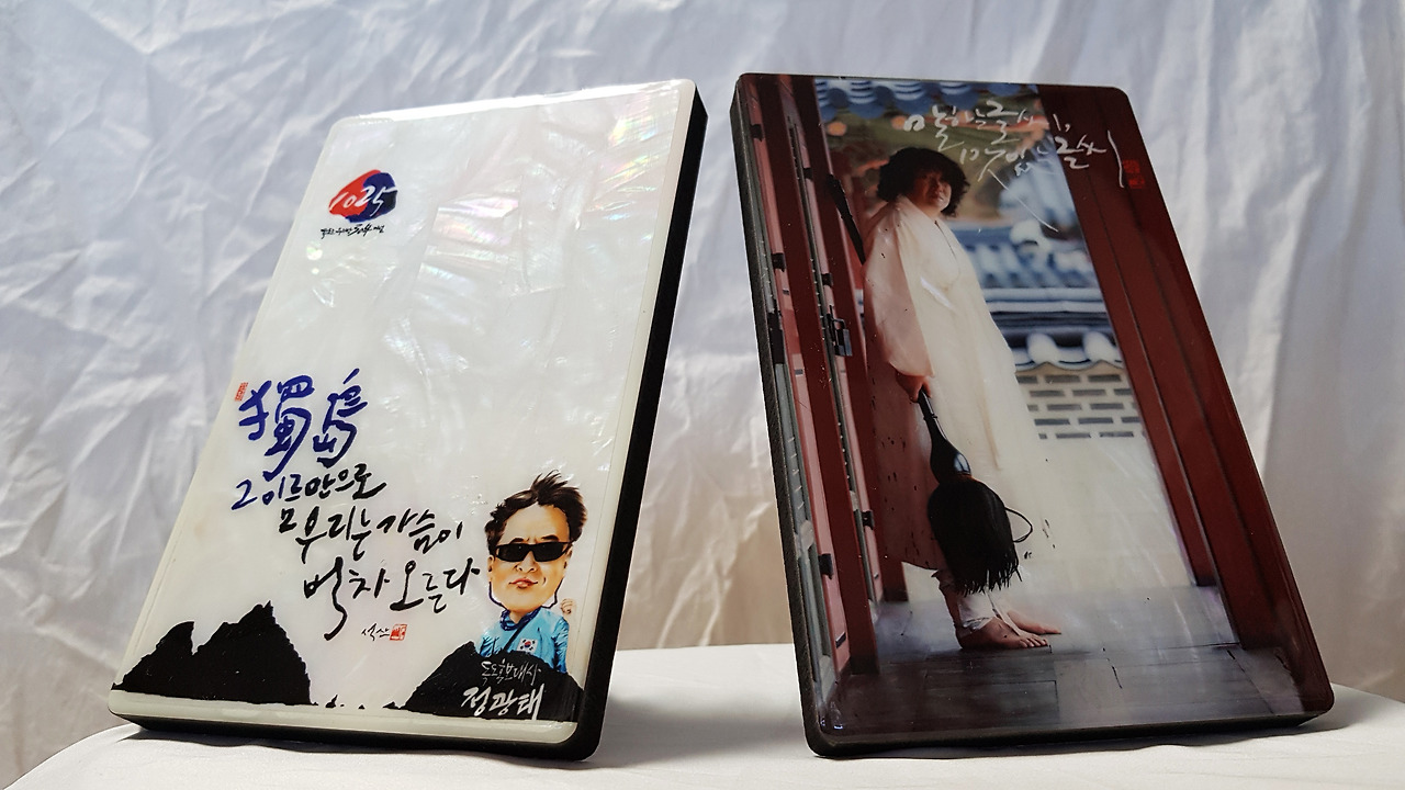 대하드라마 ‘정도전’에서 정몽주 역을 훌륭하게 소화해 낸 사극 명품 배우 임호 씨에게 ‘단심가’ 시구를 적은 캘리그래피 작품을, 한평생 독도사랑에 헌신했던 가수 정광태 씨의 ‘독도는 우리 땅 30주년'을 기념해 ‘독도 그 이름만으로 우리는 가슴이 벅차오른다’ 작품을 선물로 드렸다.