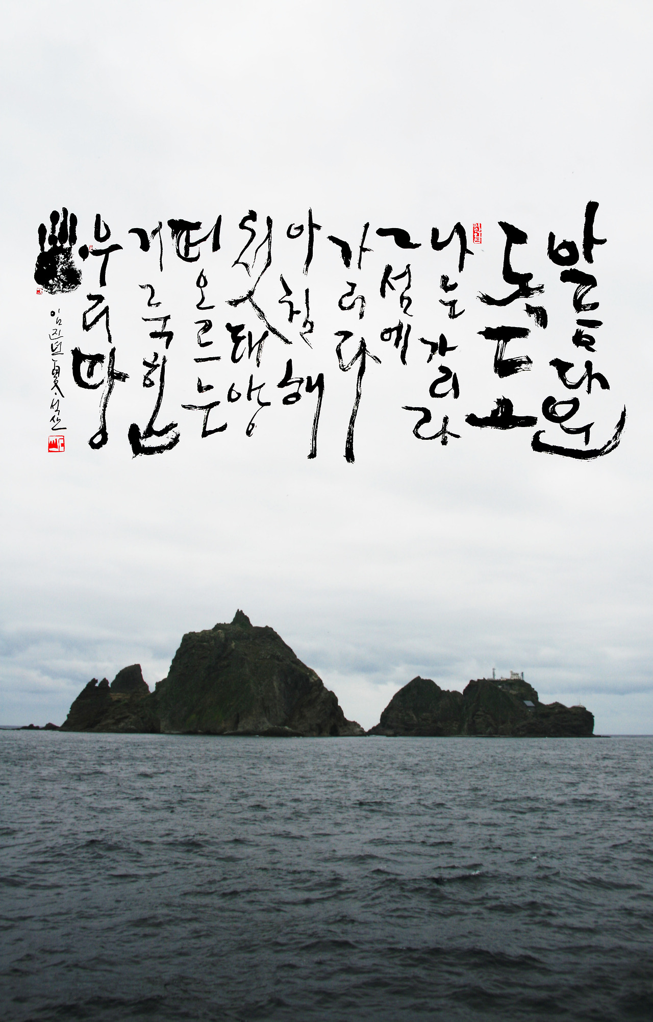 그중 직접 촬영한 독도 사진에 가수 정광태 선생의 서정적인 곡 ‘이름다운 독도’ 노랫말을 글씨로 표현했으며, 글씨 콘셉트는 우리 땅 독도 수호를 위한 염원을 담았다.
