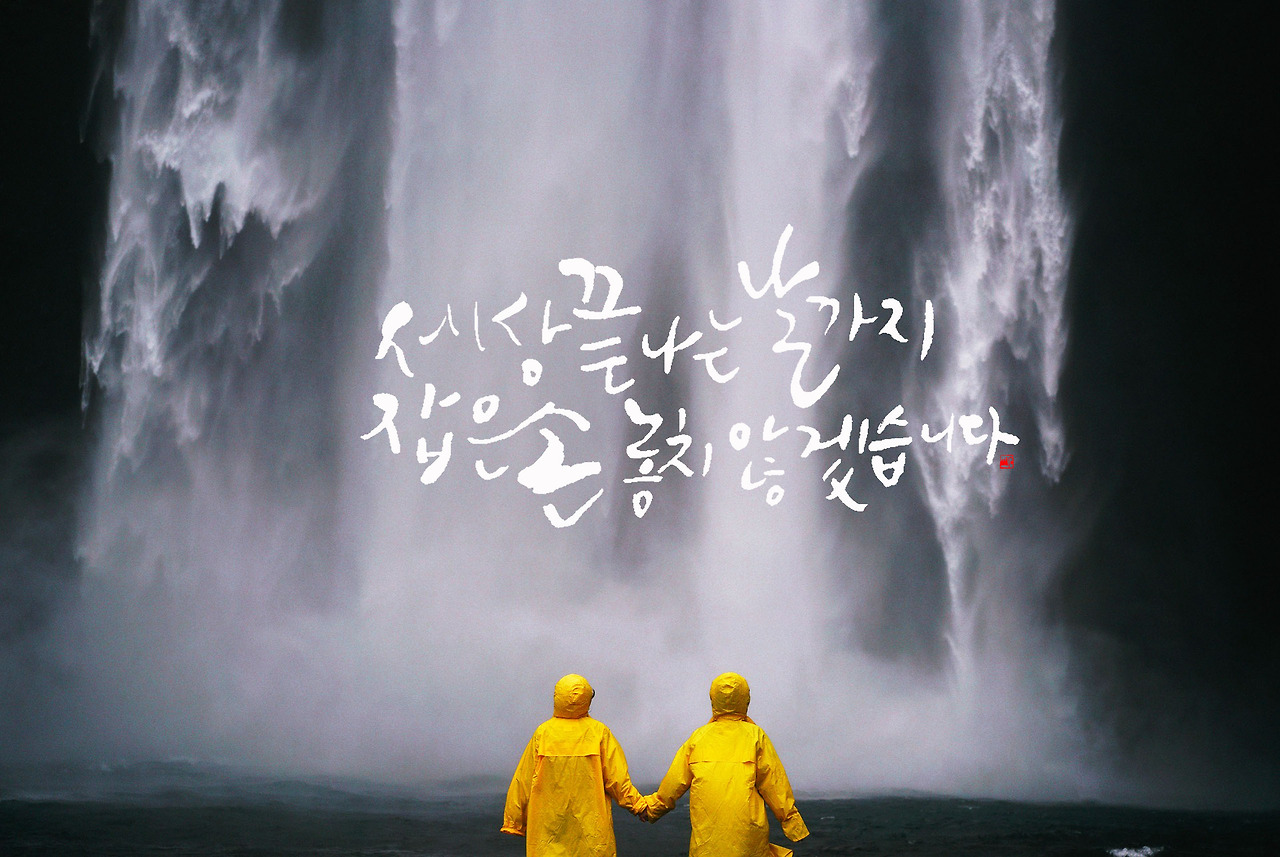 폭포를 바라보며 남편은 아내의 손을 꼭 잡으며 “세상 끝나는 날까지 잡은 손 놓지 않겠습니다”(Hindi ko hahayaang hawakan mo ang aking mga kamay hanggang sa katapusan ng mundo.)라고 다짐을 했다.