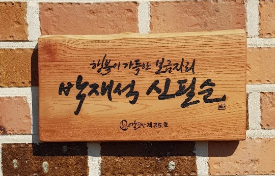 이곳 진도군 의신면을 찾아가면 늘 행복을 꿈꾸는 아름다운 부부가 살고 있다. 제25호 사랑의 서각 문패 대상자 박재석·신필순 부부가 그들이다. 평일에는 도저히 시간을 낼 수가 없다고 해서 주말에 방문을 해달라고 했지만, 본인 역시 주말에 급한 일이 있어서 진도의 아는 지인을 통해 문패를 전달해 달라며 건네주고 섬으로 돌아왔다.
