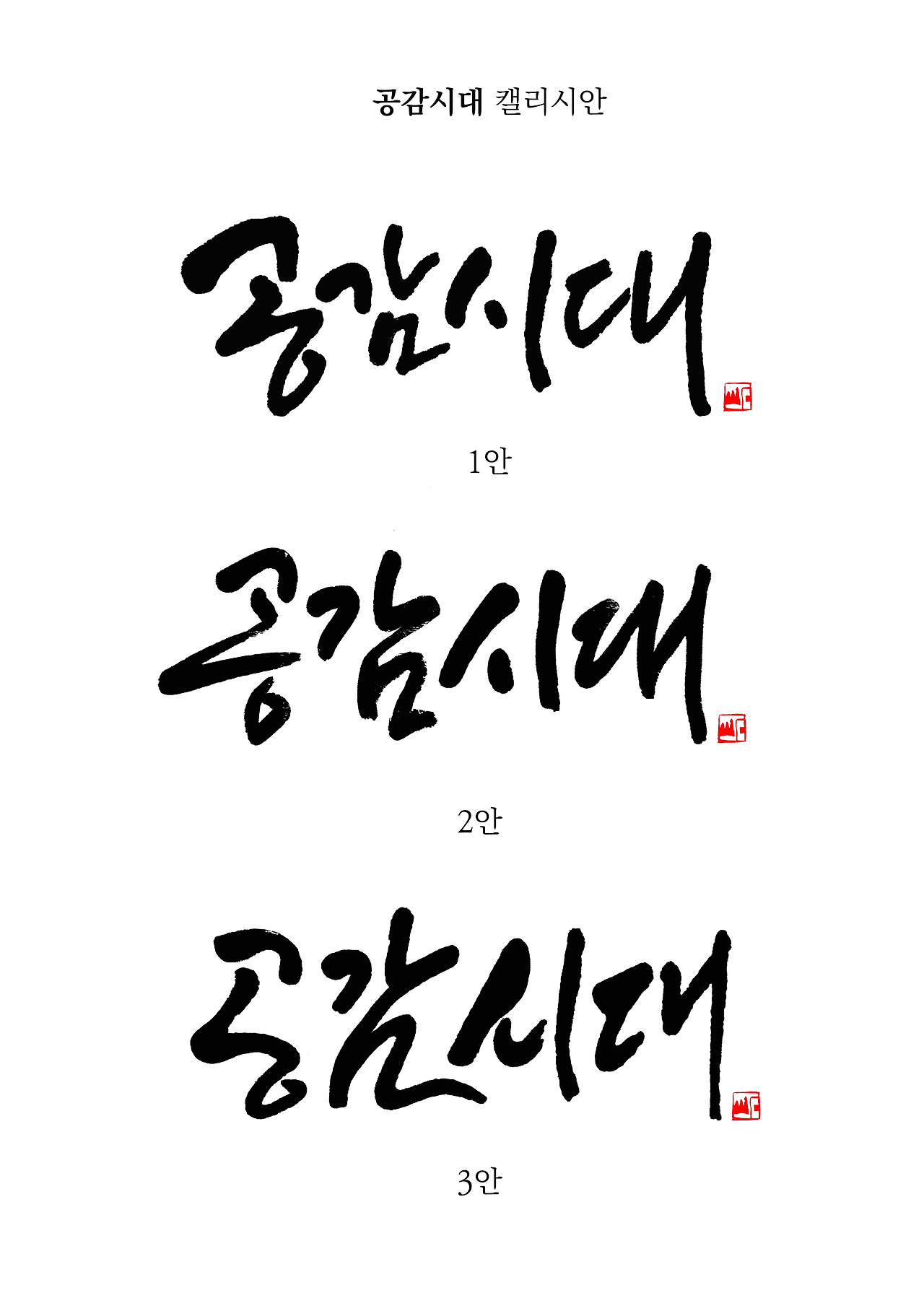 모든 시안의 첫번째 기준은 “제1안을 가장 적절한 프로그램 타이틀 서체로” 제안을 드린다는 말과 함께 각 안에 대해 짧은 견해 또한 놓치지 않았다. 견해와 제안은 글씨를 쓰는 작가의 입장이기 때문에 최대한 참고를 해서 최종 결정을 한다. 이번 EBS ‘공감시대’ 타이틀서체는 글씨 쓰는 작가의 견해를 충분히 수용해서 결정된 서체다.