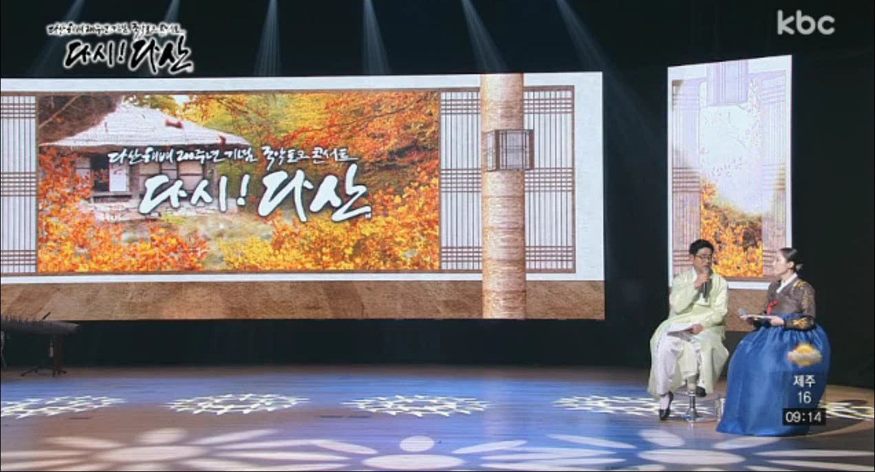 정조, 유배, 애절양, 목민심서 등 다산의 삶을 주제로 한 소리꾼들의 다양한 공연은 지난 2018년 10월 28일(일), 오전 8시 35분 KBC 광주방송을 통해 전파를 탔다.