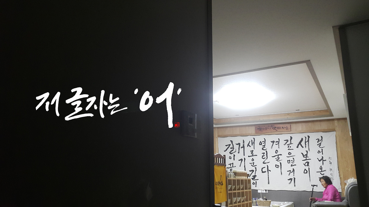 어머니는 저녁식사를 마치고 나면 늘 혼자만의 운동을 했다. 1부터 100까지 숫자를 세워가며 무릎을 손바닥으로 일정한 간격으로 내리치는 운동법이었는데 누군가에게 치매예방과 관절에 좋다는 말을 듣고 매일 운동을 거르지 않았다. 일부러 심심할까봐 TV도 안방에 설치해 드렸고 채널은 드라마에 고정시켜 드렸다. 그러다가 서실에 불이 환하게 켜져 있는 것을 보고 막내아들이 작업하는 곳으로 살며시 다가와 한지에 써 놓은 큰 글씨들을 보면서 "저 글씨는 어, 우, 나, 라.." 손가락을 가리키며 아는 글자를 발견하고 읽어가는 모습이 자랑스러웠다.