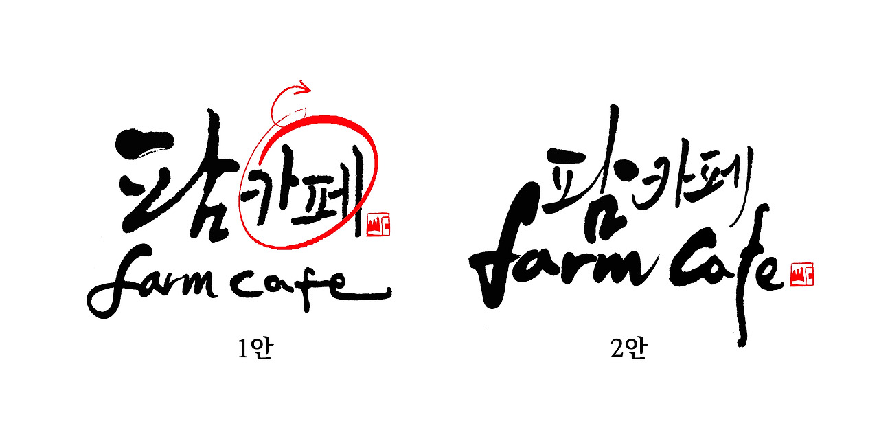 팜 카페(farm café)의 서체 방향에 대해서는 “너무 무겁지 안 했으면 좋겠다”는 권 대표의 언지(言志)를 받고 작업에 들어갔다.