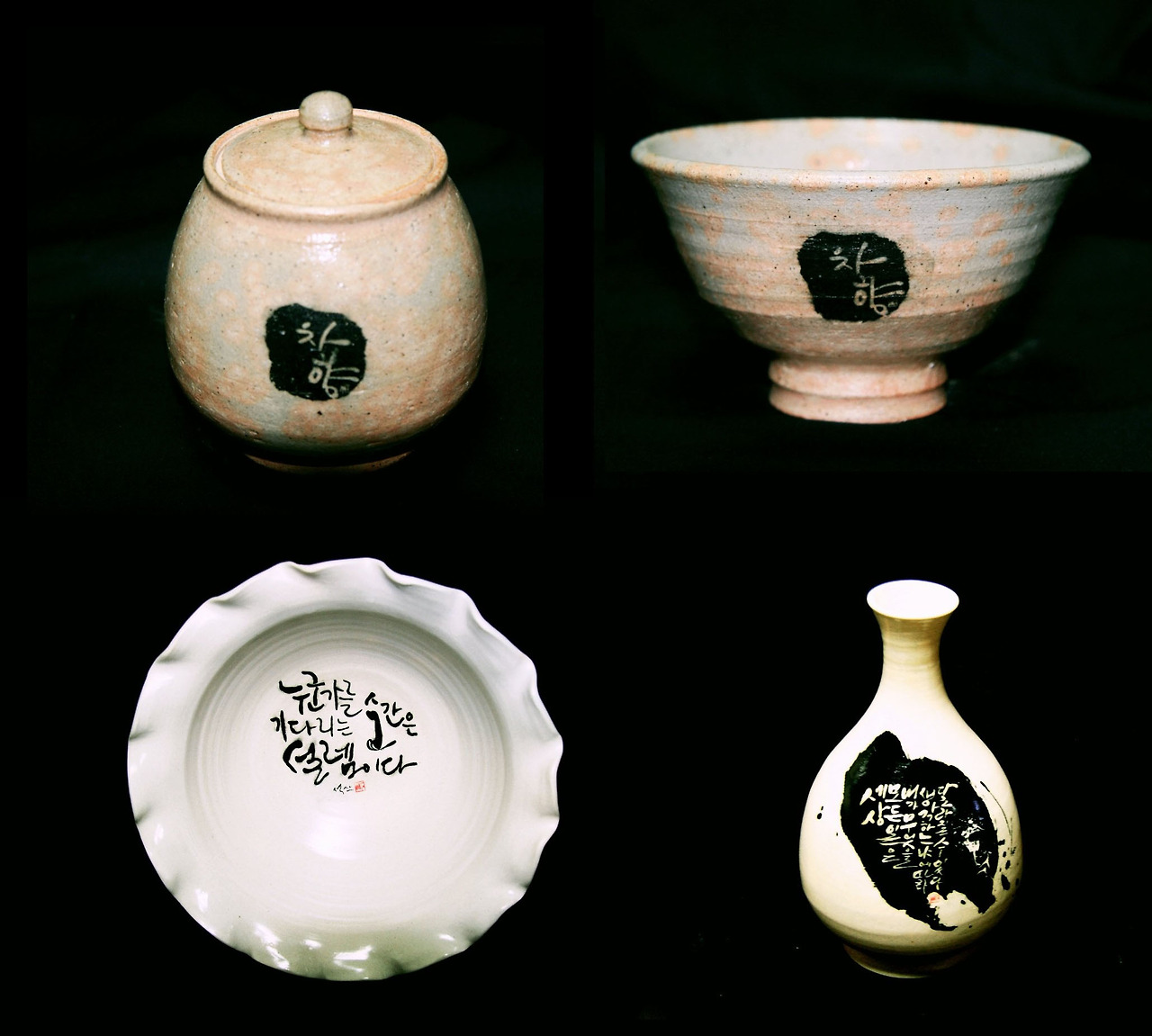 2014년 어느 여름날, 서동규 명장의 전수자 서찬기 선생과의 도자에 대한 많은 이야기를 나누던 중 도자기에 아름다운 글씨를 접목시켜 한국 도자의 새로운 변화를 이끌어 내면 어떨까?라는 공통된 생각이 맞아떨어지면서 한시적으로 작업에 착수하게 되었다. 요즘 도요지에는 전기, 가스가마가 전유물이 되어 버린지 오래다. 그만큼 나무때는 장작가마에 수요와 공급의 경제적 타산이 맞지 않다는 반증이기도 하다. 그러나, 방곡 도요는 옛 전통방식을 고수하 며 소나무 장작가마를 땐다.