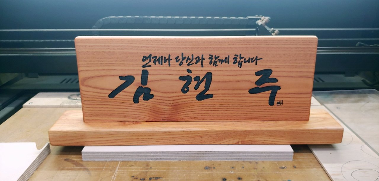 서각명패의 첫 주문은 광주에서 변호사로 활동하는 김나윤 변호사의 명패가 제1호로 제작되었다. 명패의 길이는 글자 수에 따라 약간 씩 차이가 있고 의뢰자의 맞춤조건에 의해 조정이 된다.