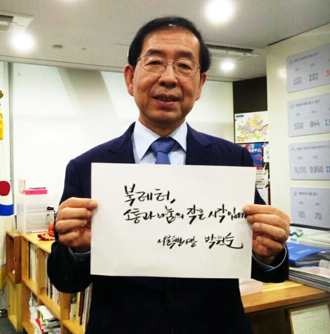 박 시장 생전에 "평소 알고 있는 지인들이나 시민들에게 안부를 전할 때나 함께 찍은 사진 속에도 본인의 친필로 손 글씨를 써서 친근감을 과시하며 캘리그래피를 누구보다 사랑했던 분으로 기억되었기 때문이다."