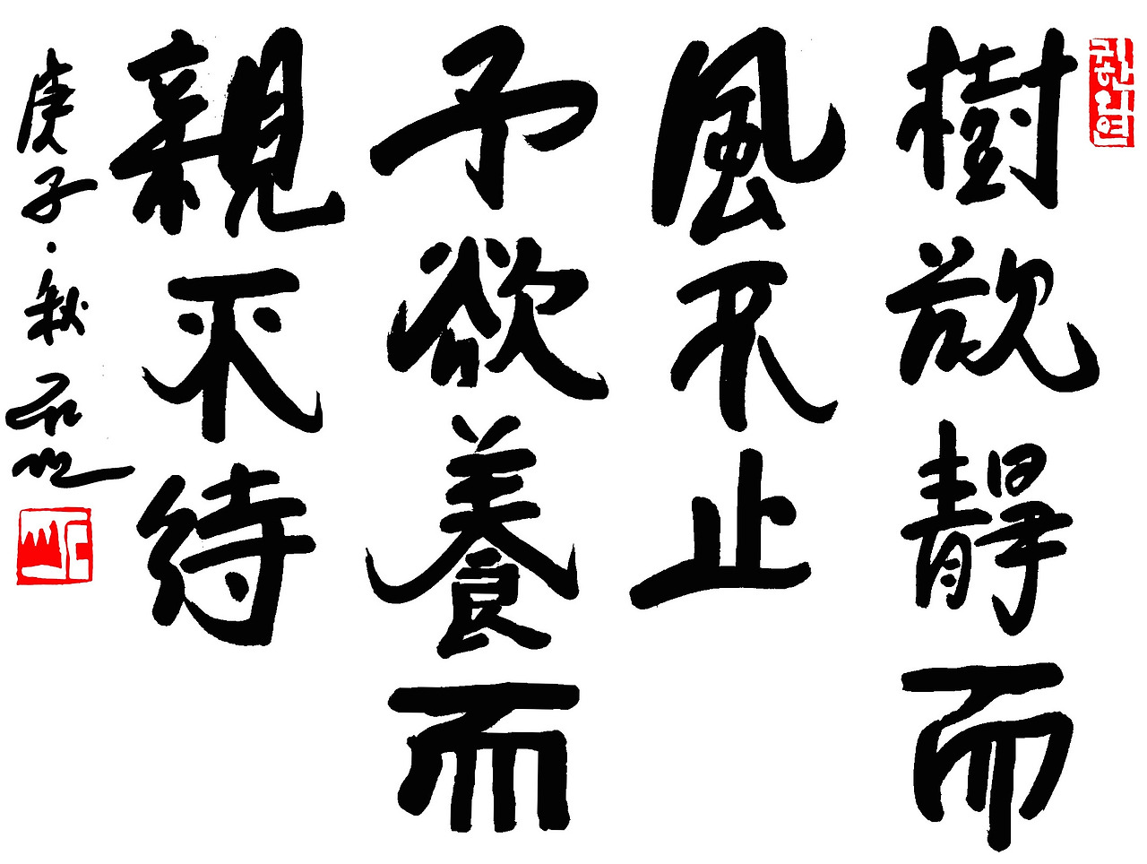 樹欲靜而風不止 子欲養而親不待 (수욕정이풍부지 자욕양이친부대)