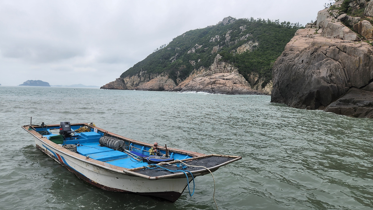폐목 수집을 위해 무인도에 정박 중인 어선