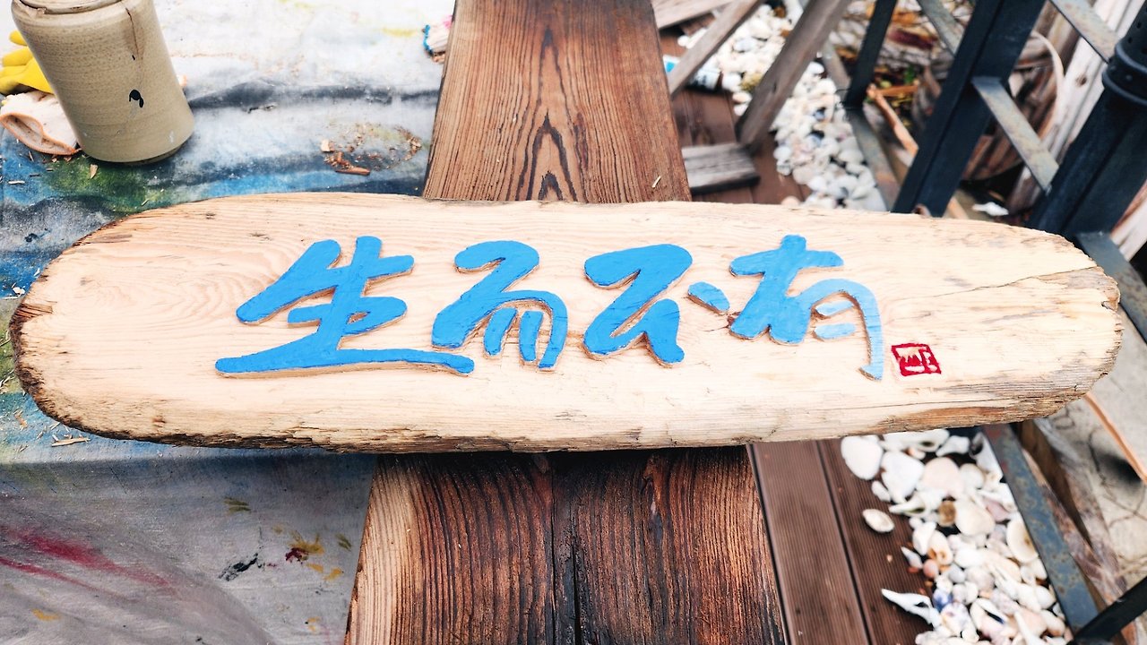 6. 위 작품 '생이불유'의 경우 글자 색이 진한 하늘색에서 점점 엷어지면서 마지막 글자인 '유'자에서 하얀색으로 칠을 할 때는 아크릴 물감의 농도를 잘 조절해서 사용하면 보다 글자의 명암효과를 극대화시킬 수 있다.