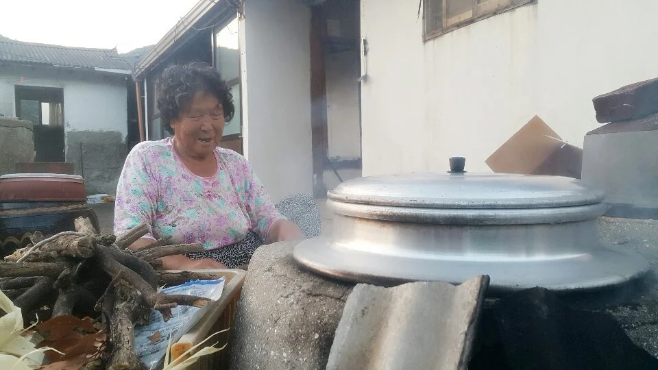 2016년 여름, 옛집에서 어머니는 아궁이에 군불을 지폈다.