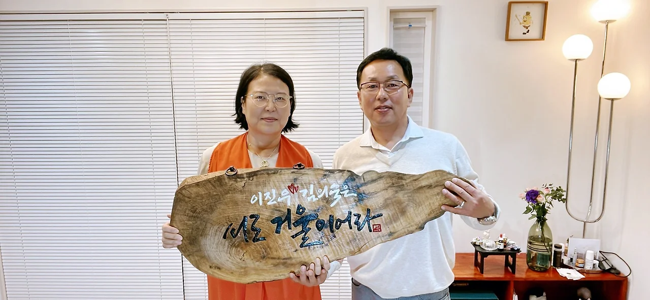 전남 나주시에서 사업을 하며 늦깎이 장가를 간 이진우 씨는 '거울 같은 삶'을 통해 아내 김의숙 씨를 평생 한마음으로 아끼고 사랑하고 싶다면서 서각 작품을 작년에 의뢰했었다.