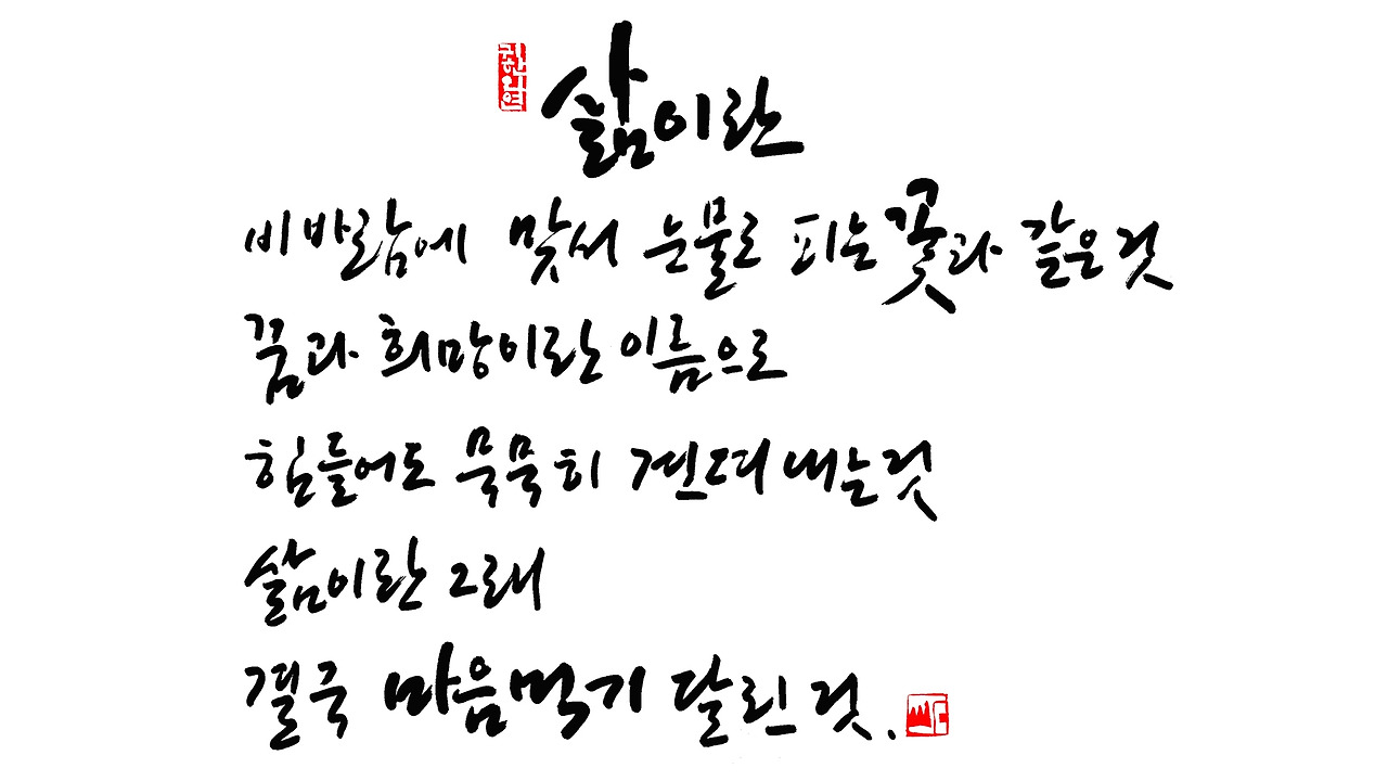김 작가가 보내온 인생 좌우명은 그의 최초 시(詩) "삶이란"의 일부다.