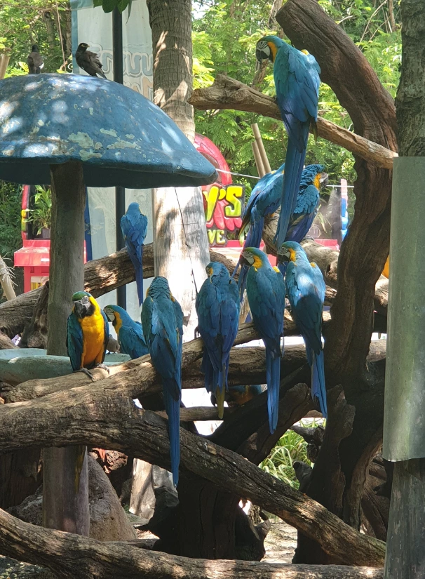 마린파크로 들어가는 입구에서 어린이들을 반기는 앵무새들입니다. 어디 날아가지도 않고 꽥꽥 소리를 지르며 어린이들을 반기네요.