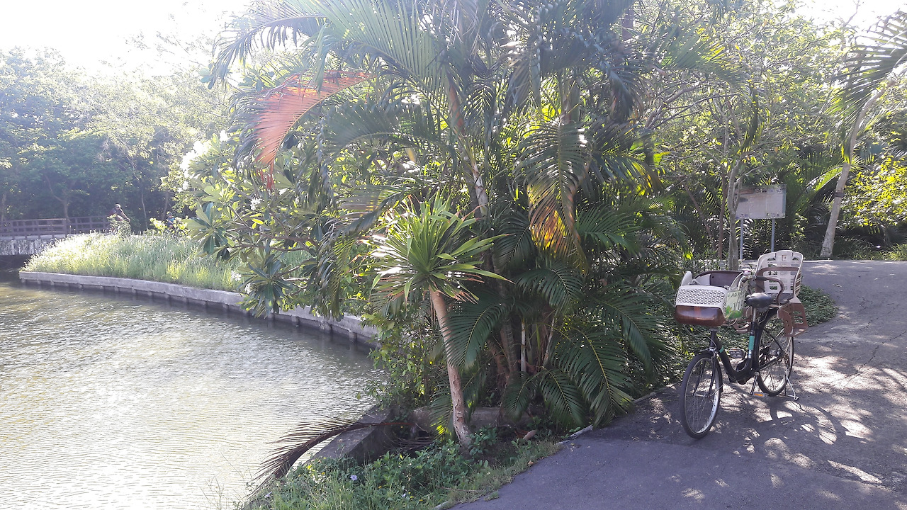 시원하게 뻗은 야자수와 잘 다듬어진 풀밭이 넓게 펼쳐져 있어요. 그냥 바라보기만 해도 눈샤워 됩니다. 선선한 아침에 자전거 타고 돌아다니면 허파 샤워도 됩니다.