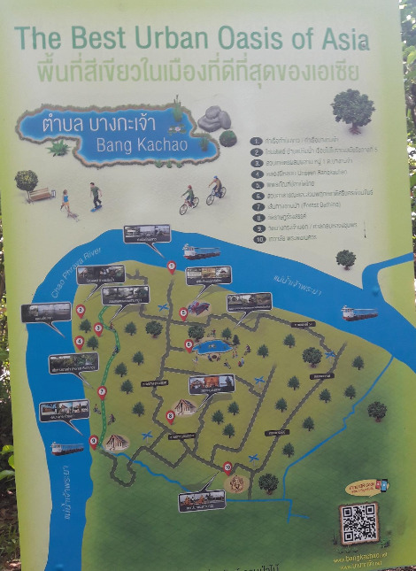 방까짜오 지역의 관광명소를 안내하는 표지판입니다. 자세한 내용은 www.bangkachao.net를 참조하세요.