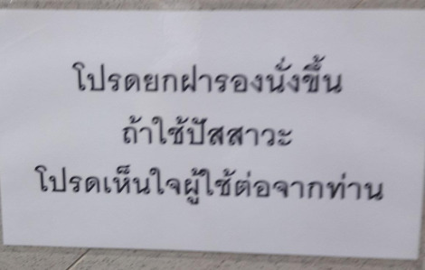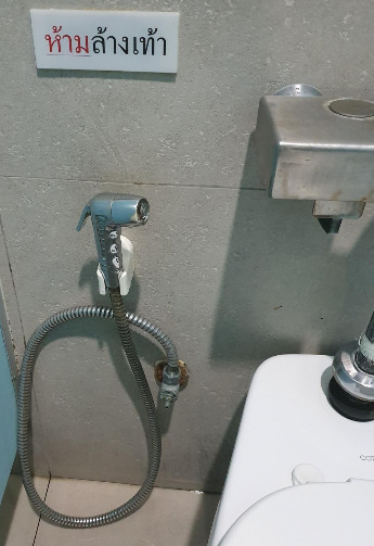 발을 씻지 말라(ห้ามล้างเท้า)고 써있는 화장실이 유독 많습니다. 이유는 현지인들이 슬리퍼(쪼리)를 많이 신고 다니면서 발에 뭐가 묻었을 때 화장실 세면대에서 씻기 때문인 것 같습니다. 비가 많이 오면 물이 넘치는 곳이 많아 구정물과 찝찝함을 씻어 내기 위해 화장실을 쓰는 일도 많기 때문입니다.