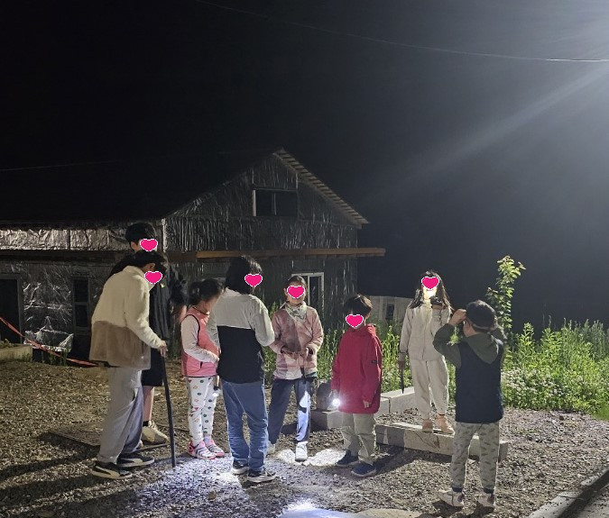 저마다 랜턴을 하나씩 들고 나왔습니다. 아이들은 저마다 가고 싶은 코스를 정하느라 떠들썩합니다. 부모님들이 나오셔서 '안전교육'을 진행합니다. "뱀을 발견하면 도발하지 말고 돌아서 지나가라", "넘어지지 않게 조심해라"라고 저도 이야기를 했지만, 이야기를 해놓고도 좀 헛웃음이 나더라고요. 저의 유년시절이 생각나서요. 이미 아이들도 다 알고 있는 것이니까요. ㅎㅎ