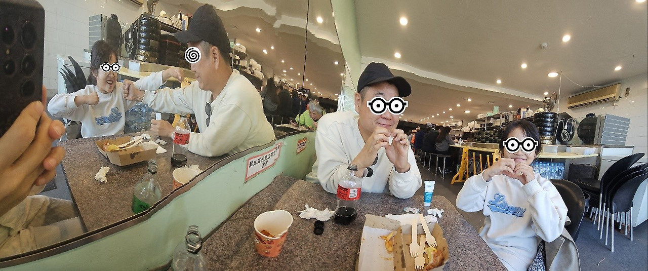하루 종일 하이드파크에서 새를 관찰한 뒤에 호텔로 돌아왔어요. 얼마나 돌아다녔는지 발바닥이 아플 지경이었죠. 스마트폰 앱으로 확인해 보니 1만 9000걸음이나 걸었더라고요. 꼬맹이가 굉장히 튼튼해지는 여행입니다. 꽈악 자고 나서 눈을 떠보니 10시가 넘었어요. 둘째 날엔 시드니 수산시장(SYDNEY FISH MARKET)을 찾아갔습니다. 펠리컨을 보기 위해서인데요. 경진이 엄마랑 아빠는 12년 전에 시드니에서 반년 정도 살았었는데요. 당시 수산시장에 놀러 갔다가 개냥이 같은 펠리컨을 만났던 기억이 있거든요. 그래서 혹시나 다시 펠리컨을 볼 수 있을지 몰라서 다시 찾아가 봤죠. 오~ 그 자리에 그대로 있더라고요. 혹시 그때 그 펠리컨이 산신령처럼 살아있었던 건지도 모르겠어요. 정말 거대한 녀석이 생선 가게 앞을 지키고 있더라고요. 눈을 부라리면서 부리 밑으로 축 늘어진 먹이 주머니(또는 막?)를 흔들면서 걸어 다녔죠. 정말 놀라운 광경이었습니다. 경진이가 어디에선가 배워온 신기한 사진 마술도 보여줬어요. 경진이가 사진을 찍는데 거울 속의 나와 거울 바깥의 내가 다른 표정을 짓고 있는 엄청나게 신기한 마술이에요. (파노라마 기능을 이용하면 된다고 하는데요... 사실 저는 어떻게 하는지 몰라요. ㅎㅎ)