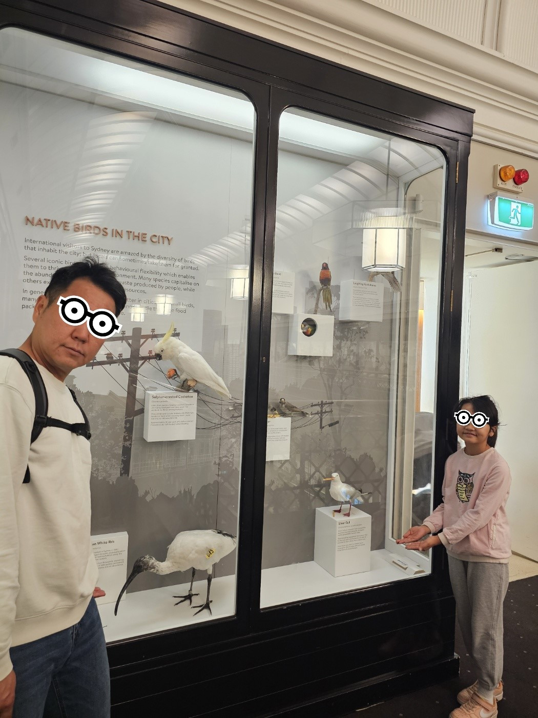 네 번째 날에는 호주 박물관(AUSTRALIA MUSEUM)에 가봤는데요. 호주의 역사와 자연에 대해 정리를 잘해놨더군요. 여태껏 우리가 봤던 호주의 새들을 만나볼 수 있었습니다. 박제로 만들어진 새들이 정말 살아있는 것처럼 생동감 넘쳤지요. 거주지 인근에서 흔히 볼 수 있는 새로 몇 종을 꼽고 있었는데요. 호주까치, 노이지 마이너, 래핑 쿠카부라, 코카투, 호주흰따오기, 레인보우 로리킷을 소개하고 있었어요 이번 여행에서 진짜 많이 만났던 새들이었죠. 여기에 갈매기까지요. 웃는 쿠카부라는 보타닉 가든에서 만났는데요. 두 마리가 나무 위에서 울어대는데 동네가 떠나갈 것처럼 호탕하게 웃어대더라고요. 새 웃음소리라니, 정말 신기한 나라에 신기한 새입니다.