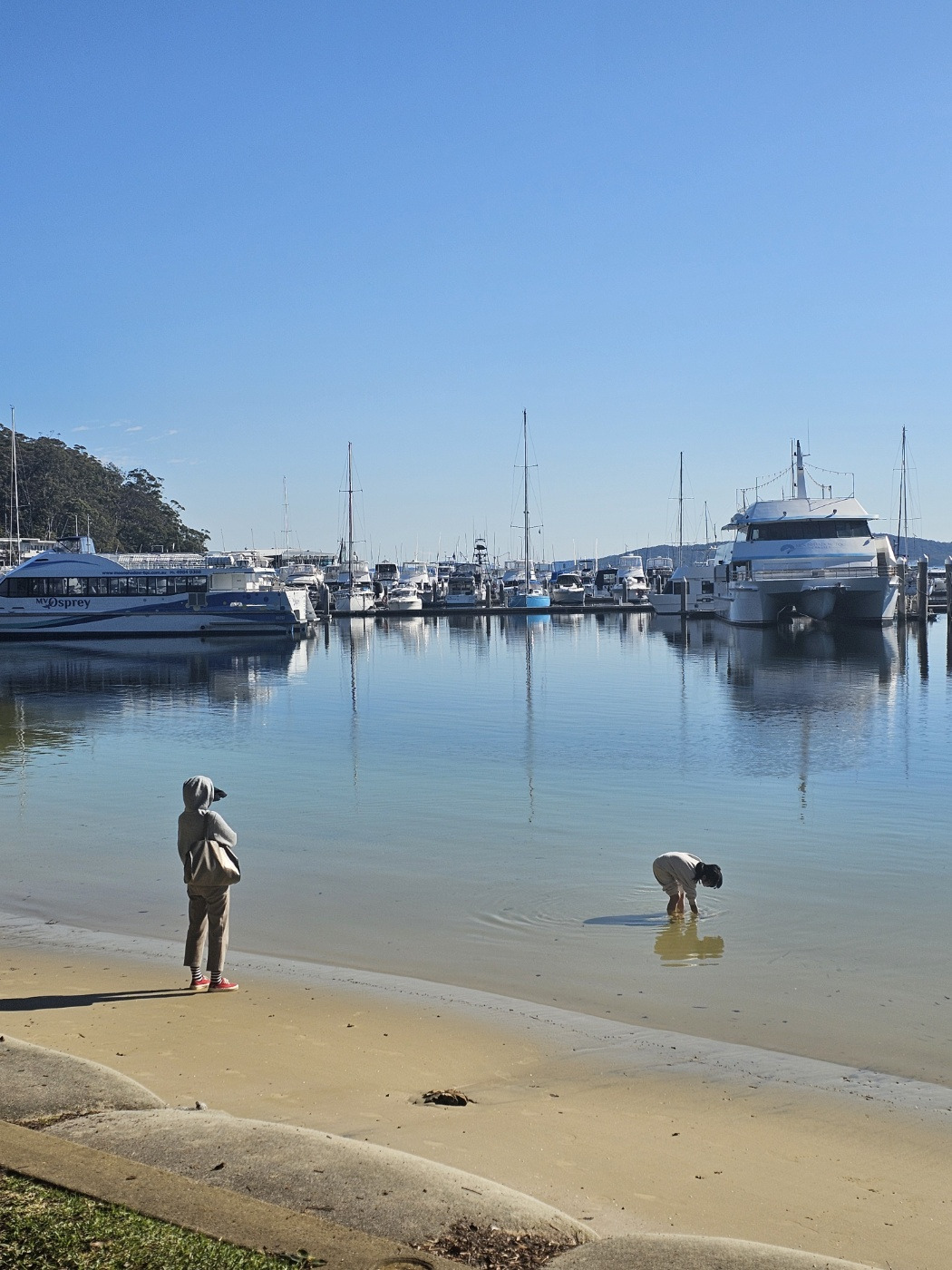 셋째 날은 아침 일찍 움직였어요. 패키지 관광으로 돌고래 관찰과 사막체험을 떠난 건데요. 한국관광객들에게 널리 알려진 포트 스티븐스로 (Port Stephens) 향했습니다. 배를 타고 포트 스티븐스항구를 나선 지 십여분 만에 헤엄치는 돌고래를 만날 수 있었습니다. 어미가 새끼를 업고 헤엄치는 모습이 귀여웠어요. 계절이 맞으면 혹등고래도 볼 수 있다고 하는데요. 우리가 갔던 겨울은 혹등고래가 오는 철이 아니라고 하네요. 한국 관광객이 많이 왔는지 선장님이 한국말로 "저기 왼쪽... 여기 여기 오른쪽"이라고 말해줘서 깜짝 놀라기도 했어요. "여기저기 옆에"라고 하는데 여기는 어디고 저기는 어디고 또 옆은 어딘지... ㅎㅎ