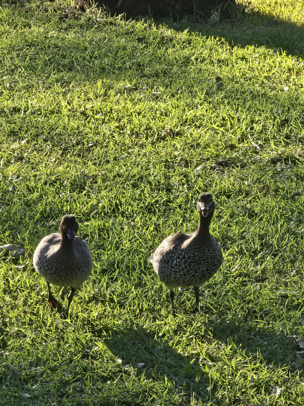 새와 교감하고 싶은 경진이는 공원 곳곳에 '새에게 먹이를 주지 마세요'라고 쓰여 있는 표지판을 발견하고 조금은 실망했어요. 마구마구 먹이를 주고 손바닥에 먹이를 올려놓고 새를 유혹하고 싶었는데요. (경진이가 생각하는 교감 끝판왕은 손바닥에 먹이를 올려놓으면 동물이 와서 받아먹는 것이랍니다.) 준법정신이 매우 강한 어린이는 망설인 끝에 먹이를 주지 않기로 했어요. 대신 주변에 피크닉 나온 호주 사람들의 음식을 호주흰따오기가 훔쳐먹는 걸 보며 반응했죠, "저 도둑놈들... 저거 저거... ㅉㅉㅉ"
