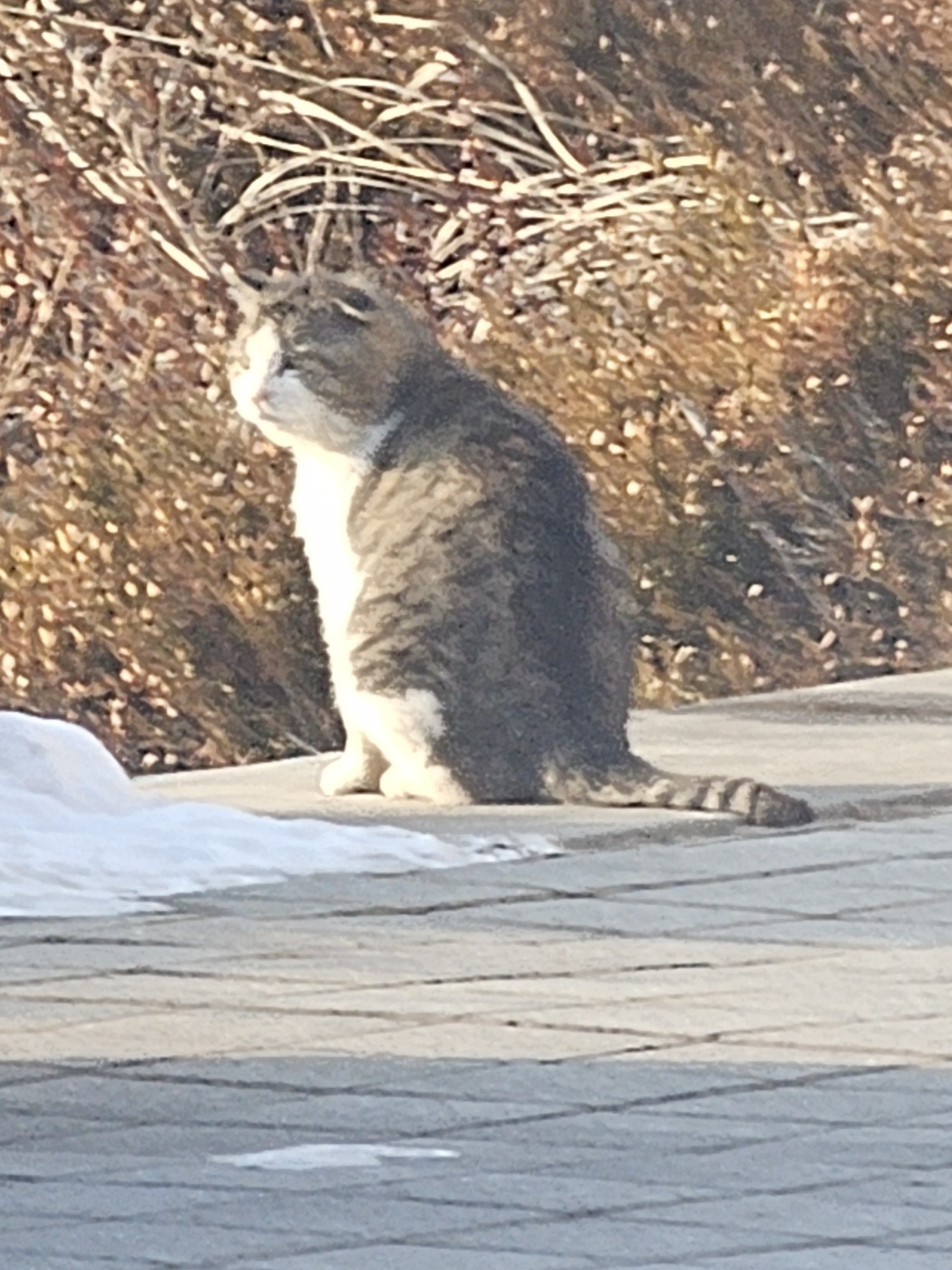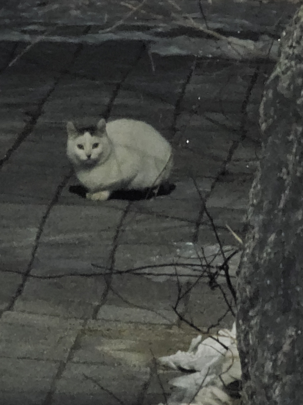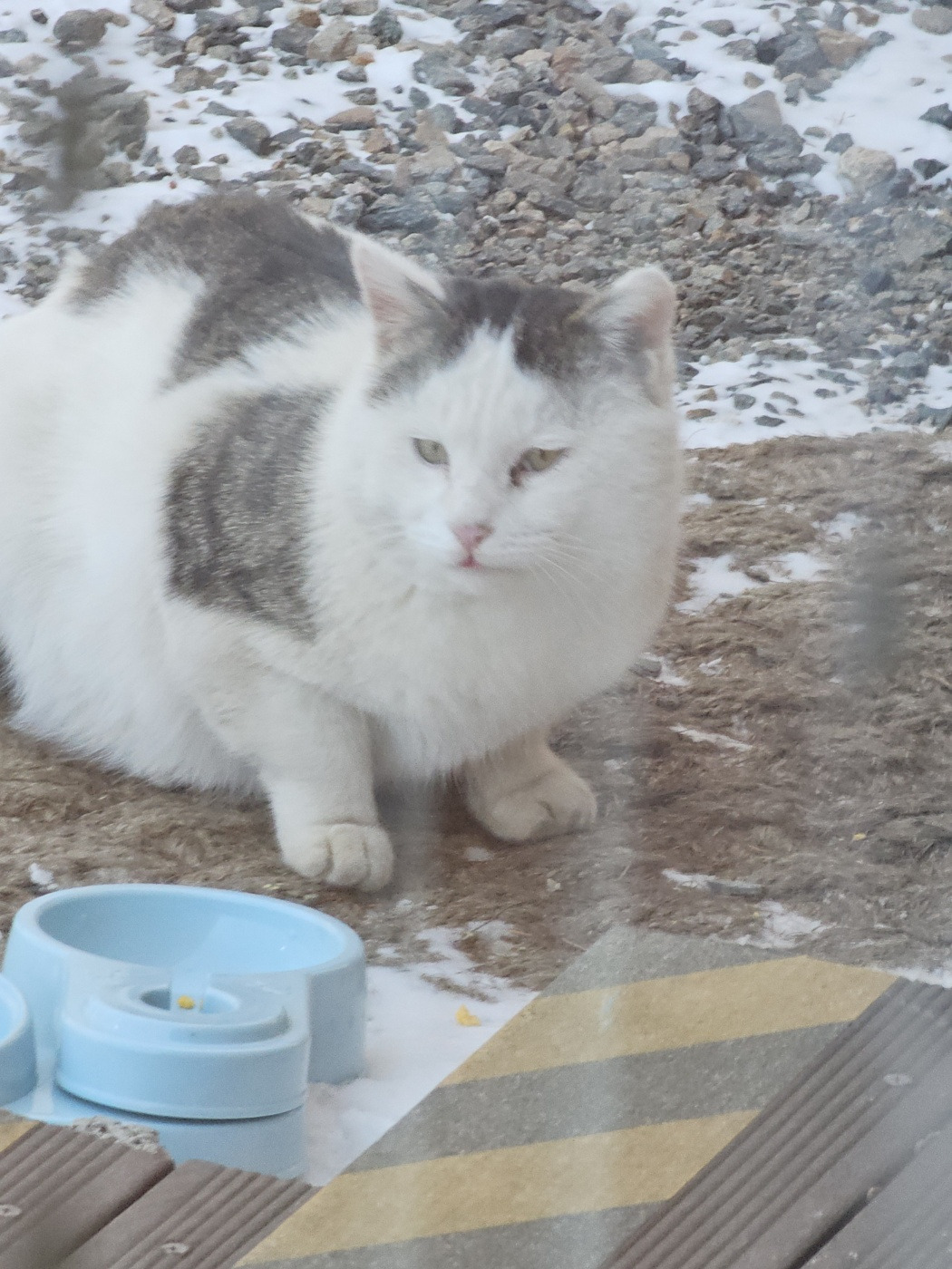 치치는 건강하고 씩씩하게 겨울을 잘 보내고 있습니다. 그런데 자꾸 원래 터를 잡고 있었던 기존 길냥이들이 치치를 쫓아내는 모습이 보입니다. 숙소 위 산자락에 스티로폼 겨울집을 만들어 주고 거기 들어가서 지내곤 했는데 저녁마다 '둘째기'를 비롯한 길고양이들이 집을 털러 갔습니다. 집안에 들어간 치치는 날카로운 경계음을 내면서 저항했고요. 가끔씩 육탄전도 벌어지는 것 같았습니다. 그래서 치치는 겨울집을 포기하고 우리 집 에어컨 실외기 뒤 좁은 틈에서 움츠리고 있을 때가 많았죠.