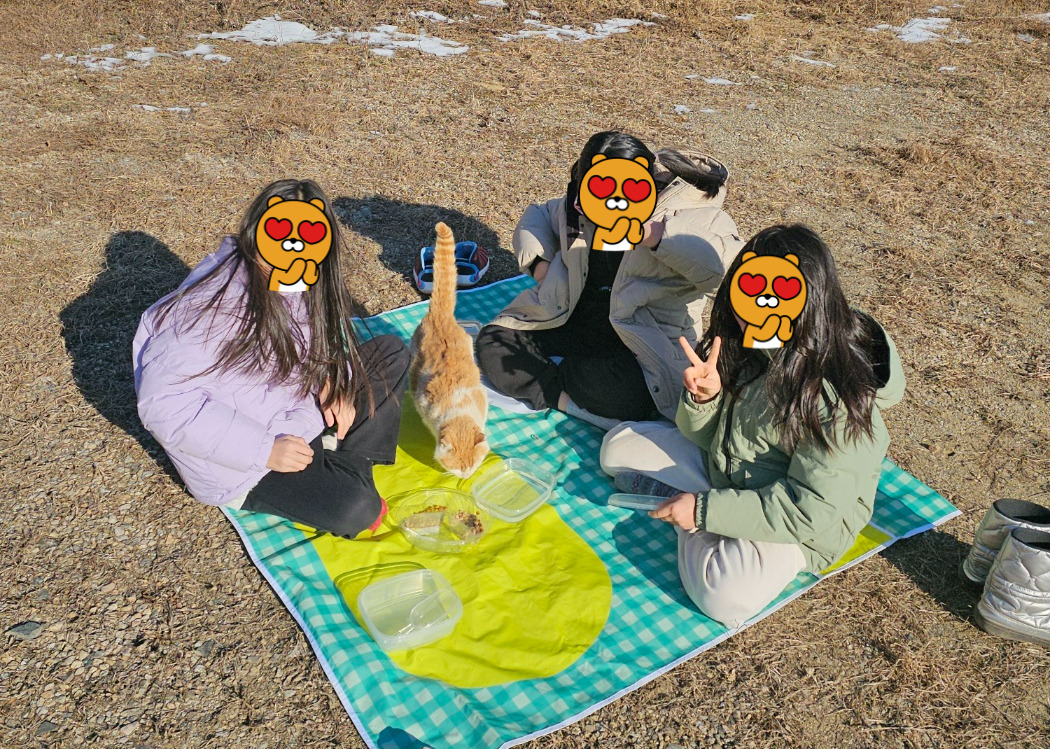 왼쪽부터 백설기, 셋째기(두목고양이), 치치(길개냥이: 아이들이 좋아함)