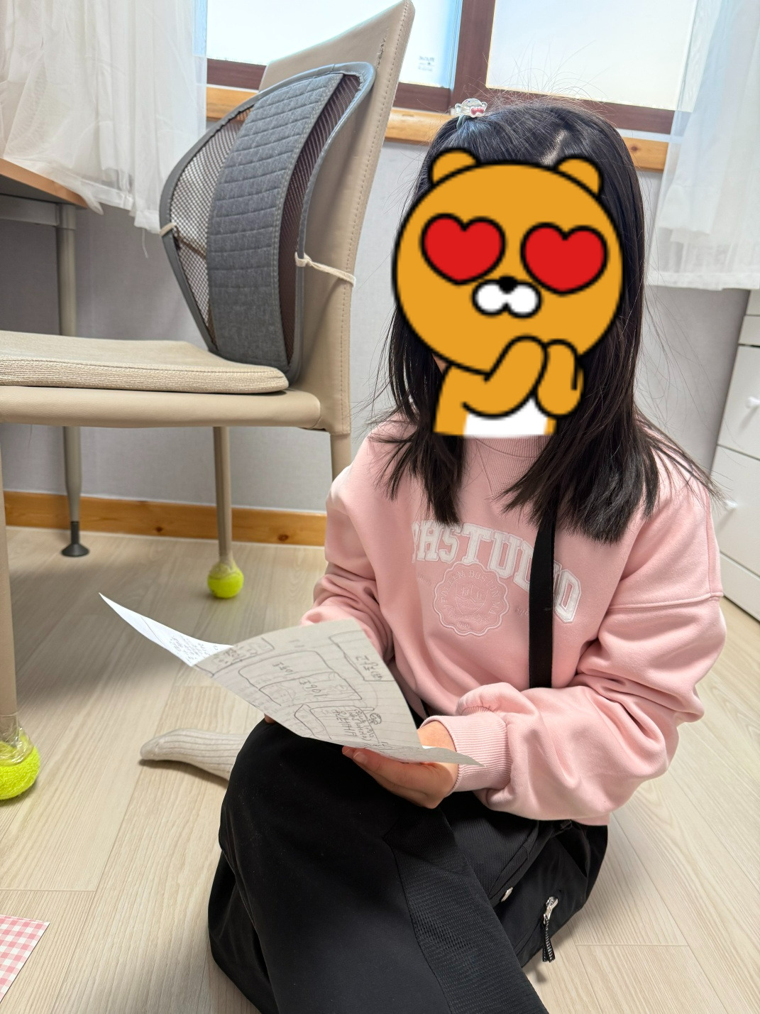 곧 초5가 되는 초4경진은 설피마을을 떠나기 전에 '102호 사용설명서'를 만들어서 책상 밑에 붙여놓고 왔습니다. 올해 도농교류센터 102호를 사용하게 될 '지유&지아'를 위해 알아두면 좋을 만할 정보를 적어놓은 것이죠. 행여 못 볼까 봐 생태유학 양 주임님께 다음에 오시는 가족에게 전해달라고 신신당부도 했죠. 경진의 마음이 담긴 102호 사용설명서는 새로 생태유학을 시작하는 지유와 지아에게 전해졌습니다.