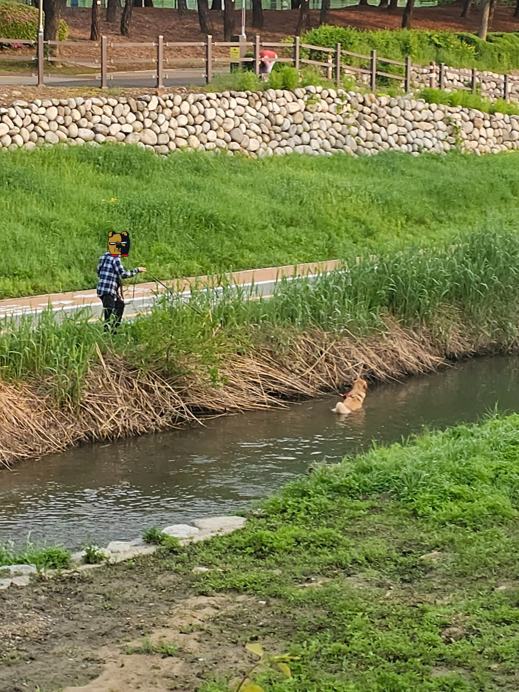 하지만 요즘 자주 목격하는 한 장면이 내 신경을 거스른다. 중년 남자가 리트리버 개를 데리고 산책하면서 개를 물길에 집어넣어 물길을 따라 산책하도록 하는 장면이다. 남자는 엄청나게 긴 줄을 이용해 개를 하천에 들어가도록 허용한다. 개가 억지로 들어가는 것 같지는 않고, 개도 물속에 들어가 물길을 따라 산책하면서 냄새 맡는 걸 좋아하는 눈치다. 그런데 뭔가 좀 기괴하다. 거대한 개가 물길에 들어가 활개를 치고 다니는 건 괜찮은 걸까?