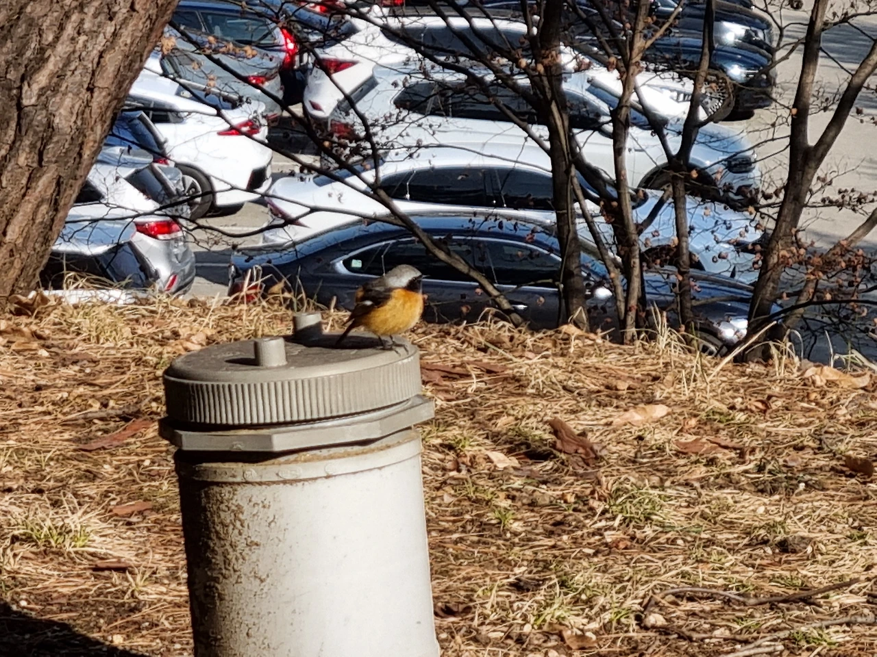 딱새를 처음 본 순간 나는 새가 아니라 누군가 두고 간 공이라고 생각했다. 주황색 선명한 동그라미 하나가 나무 둥치 위에 있었다. 발걸음을 멈추고 고개를 돌려 자세히 본 그 곳에는 바로 딱새가 앉아 있었다. 너무나도 동그란 그 모습에 나는 지금 면담 가는 길이라는 것 조차 잊은 채 한참을 바라봤다. 내가 움직이면 딱새가 멀리 날아갈까 무서워 숨조차 세게 쉬지 못하며 내적 비명을 질러댔다. 너무 귀여운 모습에 한참을 입술을 깨물며 속으로 오만가지 오두방정을 떨었다.