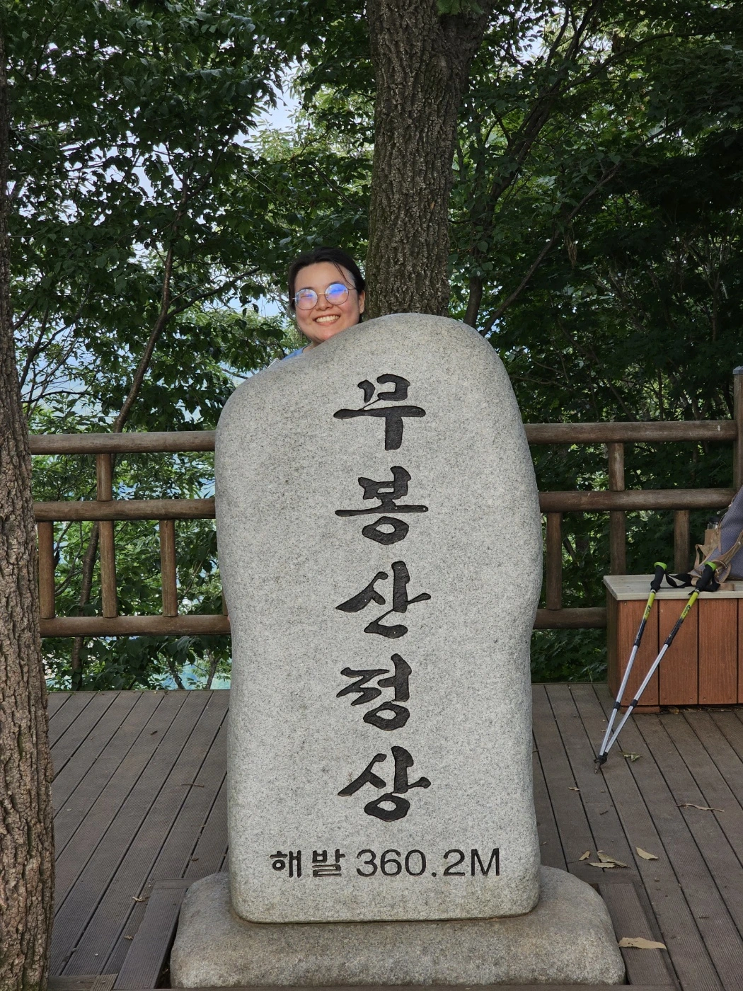 계단이 끝나자 산행이 조금 더 수월해졌다. 나무 줄기 올록 볼록한 길을 오르락 내리락 하다보니 어느새 헬기장에 도착할 수 있었고, 그제서야 우리는 한 숨 돌렸다. 이제서야 산의 정취가 눈에 들어왔다. 덥지만 시원한 산바람과 옥구슬 굴러가는 듯 한 새소리 그리고 땀 범벅 되어 헉헉 거리는 서로를 바라보며 우리는 조금 웃었다. 여기까지 왔는데 정상은 가봐야지 하는 마음에 조금만 더, 조금만 더를 외치며 남들은 한시간만에 끝낸다는 정상까지의 코스를 우리는 2시간이나 걸려서 도착 할 수 있었다.