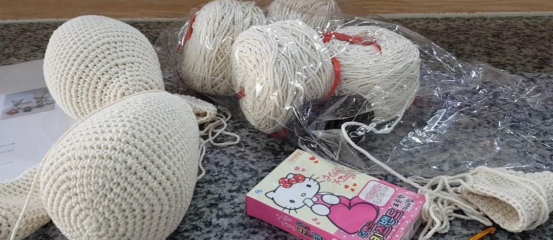 뜨개질은 하나의 코에서 시작된다. 긴 바늘을 움직여 실을 걸어 빼 내면 하나의 코가 만들어진다. 이 코가 직렬을 이루면 하나의 단이 완성된다. 이제 이 단은 점이 아닌 하나의 선으로 보여진다. 코의 직렬들이 만들어 낸 하나의 단이 쌓아 올려지면 편물, 즉 면이 되는 것이다. 여기까지 이르려면 시간의 에너지 역시 필요하다. 내게 도깨비 방망이가 있지 않으니 나는 시간의 흐름 속에서 일일히 점을 만들고, 선을 만들고 면을 만들어야 한다. 일전에 가게에서 뜨개인형을 만들고 있던 내게 동료가 이것의 이전 단계가 무엇이냐는 모호한 질문을 던진 적이 있다. 당시 나는 이 질문의 의도를 파악하지 못하고 "실?"이라는 대답을 주었다. 만일 그 때 내가 이 점, 선, 면 그리고 시간의 이치를 알고 있었더라면 좀 더 나은 대답을 줄 수 있었으리라.