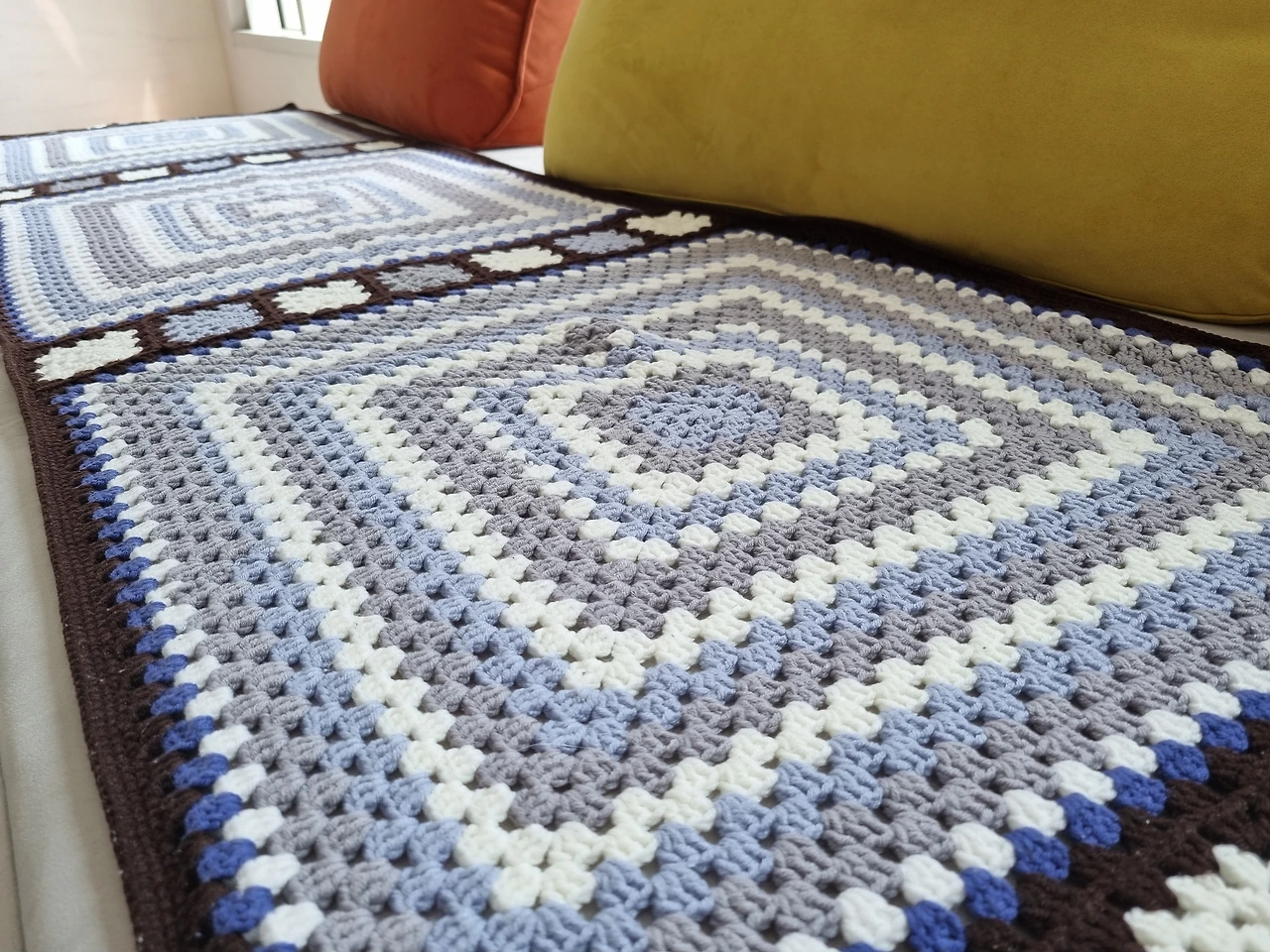 계절의 변화는 옷을 정리하는 것으로부터 시작된다. 한여름의 무거운 공기를 버티고자 걸쳤던 가볍고 하늘하늘한 옷가지 옆으로 조금 더 도톰한 바지와 셔츠를 꺼내 정리한다. 행거에 걸린 외출복 원피스 옆으로는 가볍게 걸칠 가디건을 꺼내어 건다. 서랍 가장 아래 두었던 긴소매 잠옷을 위로 올린다. 옷장과 서랍을 살풋 정리 하면 이제 쇼파 위에 깔 매트를 꺼내 손질한다. 이 매트는 내가 만들었다. 몇 해 전 샤무드라는 소재로 된 쇼파가 유행이었다. 알록달록한 색감과 부드러운 촉감에 반해 우리도 집에 샤무드 쇼파를 들였다. 옆지기의 생일 선물 겸 구매한 쇼파는 완연한 봄에 우리 집에 들어왔다. 여름 더위와 가을을 싸늘함에도 안락했던 쇼파는 겨울이 되자 얼음장 같이 차가워졌다. 소재의 특성인지는 확실치 않지만, 겨울의 샤무드 쇼파는 포근함과는 거리가 멀었다. 더욱이 거실 바닥까지 대리석으로 되어 있다보니 겨울의 우리 집은 살풋 놀러온 온기도 화들짝 놀라 도망치는 모양새를 하고 있다. 더위도 힘들어하지만 추위에도 약한 나는 쇼파가 내뿜는 냉기에 더 이상 놀라기 싫어 포근한 뜨개 매트를 만들기로 마음 먹었다. 당장 실가게로 달려가 제일 포근한 실을 구매하고 뜨는 내내 지루하지 않을 무늬를 구상했다. 그렇게 시작한 뜨개질은 겨울 지나 눈이 녹는 봄, 태양도 더워하는 여름, 풍요로운 가을을 지나 다시 입김 바스라지는 겨울이 되어서야 완성되었다. 내가 여태까지 떠 본 모든 작품(작품이라고 거창하게 이름 붙일 퀄리티는 아니지만 내 정성이 들어갔으니 적어도 나 하나 정도는 그것들을 작품이라 불러도 되지 않을까) 중 가장 크고 오래 걸렸다. 크기도 크지만 사실 겨울이 지나 다시 쇼파가 포근해지니까 얼른 떠서 완성 해야 겠단 생각이 안들어 꽤나 쉬엄 쉬엄 떴다. 여름 쯤에는 부피가 큰 편물을 끌어 안고 뜨개질 할 자신이 없어서 거의 거들떠 보지도 않았다. 생업이 바빠 몇날 며칠 먼지 앉도록 내버려 둔 적도 있다. 그렇지만 결국 완성 시켜 다음 해 겨울부턴 쇼파 위에서 제 역할을 다 할수 있게 만들어냈다.