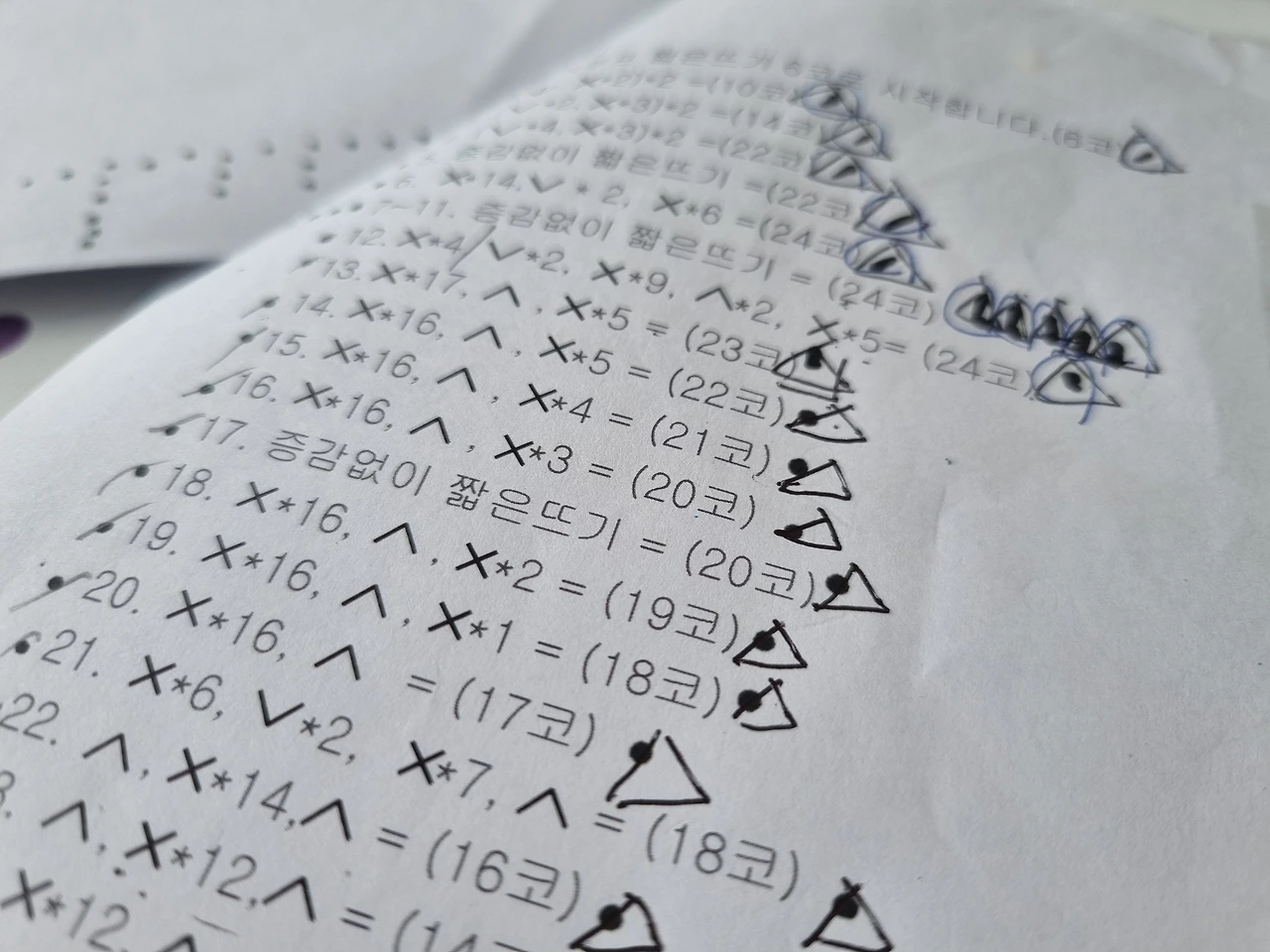 수학을 못해서 포기해야 한다고 여겼던 것이 기회가 됬고, 더 이상 숫자와 얽히지 않은 삶을 살겠다고 여긴 순간 숫자로 첨철된 뜨개질이 취미가 되었다. 수포자가 숫자지옥 뜨개질을 멈추지 못하는 것은 뜨개라는 행위가 주는 다양한 만족감때문일 것이다. 세상 모든 색의 실을 고르는 과정부터, 떠 내려간 편물의 보드라운 촉감, 점점 형태를 갖춰가는 편물, 마지막 꼬리 실을 정리하고 가위로 잘라내는 순간의 희열까지 뜨개라는 행위에 담긴 여러 동작 동작들이 중독을 만들어낸다. 내가 수를 세는 것에 지쳐 뜨개를 포기했다면 느끼지 못했을 기쁨들인 것이다. 한 때 가장 비탄의 감정을 느끼게 한 수학이 10년 뒤 이렇게 큰 기쁨이 될 줄 누가 알았겠는가. 지금 내가 힘겹다 여긴 것들이 앞으로 10년 뒤 나에게는 행복이 될 수도 있지 않을까?