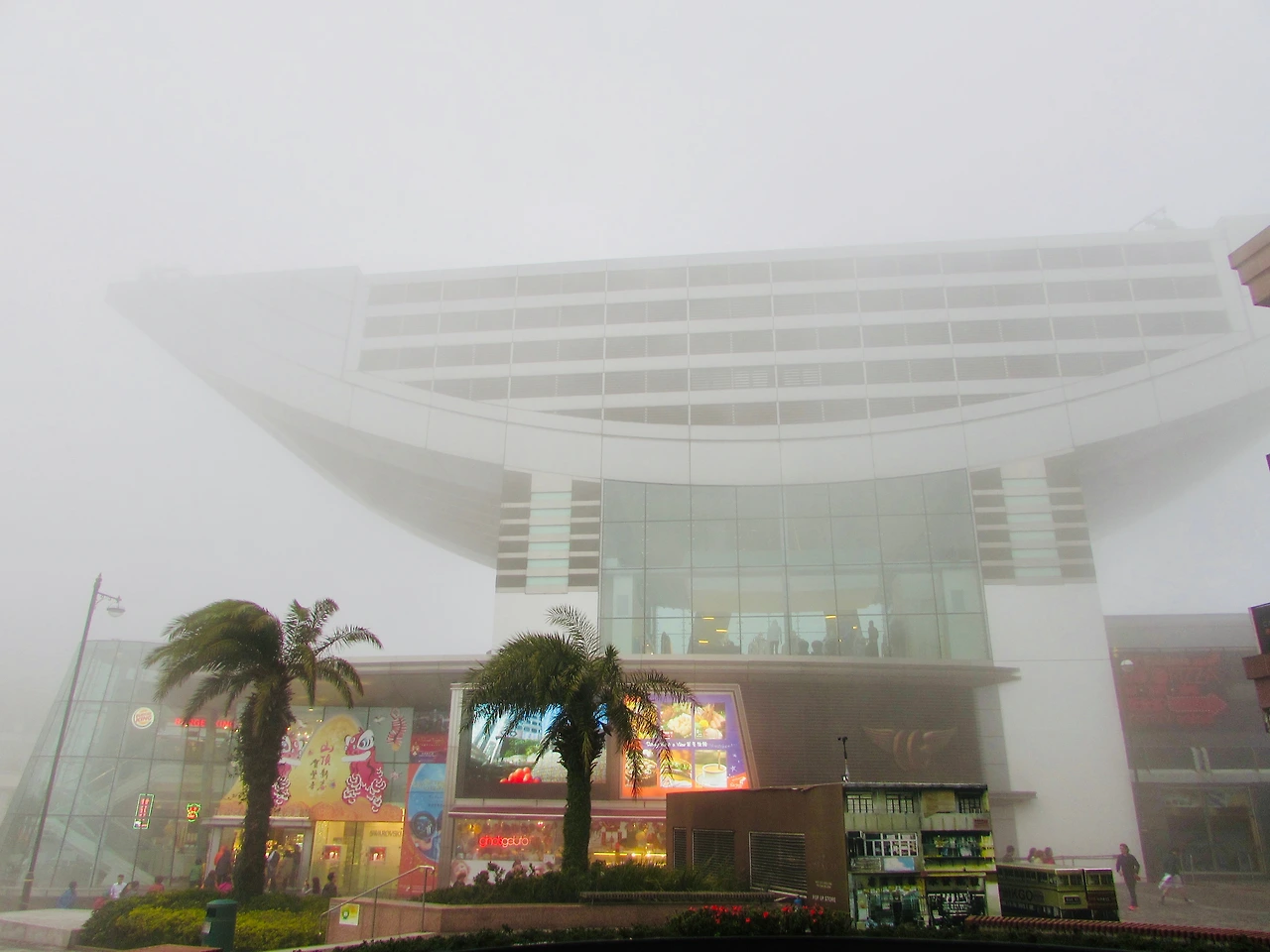 여느 관광명소처럼 기념품 가게들과 음식점들이 안갯속에서 붉게 반짝거릴 뿐이다.