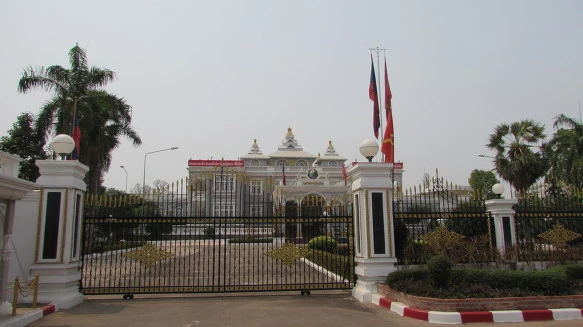 국수 맛을 조금 더 풍미 있게 만든다. 근데 이 잎은 무엇일까. 허브 같기도 하고 이상 야릇한 잎사귀이다. 나는 한 그릇을 완전히 비웠다. 이제 배도 부르고 갈증도 해소되었으니 자전거는 신나게 달린다. 라오스 대통령 궁전도 나타난다. 정문 앞에서 바라보니 멀리 빠뚜사이가 보인다. 그리고 왓씨싸켓에 도착했다.