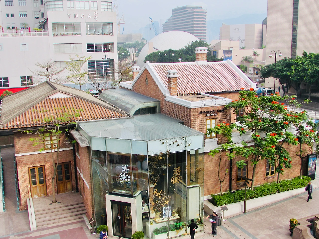 육교에서 다시 인도로, 다시 지하통로로 우왕좌왕 걸으며 다시 인도로 나서는 순간 층층이 쌓아 올린 붉은 벽돌과 다소 완만한 기와지붕을 가진 건물이 나타났다. 지붕은 중국의 문화 전통을, 붉은 벽면은 빅토리아만을 밀고 들어왔던 서양 근대 문명을, 출입구는 동서양 교류의 대문을 상징하듯 투명한 통유리로 출입구를 만든 '상하이 탕 명품 숍'이다.