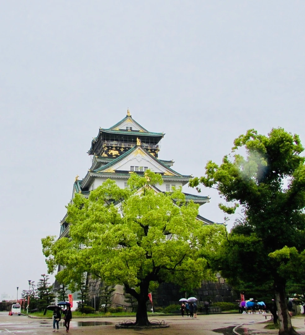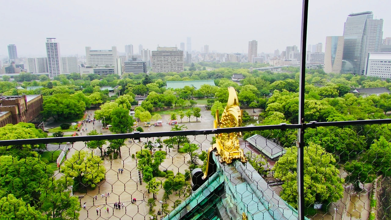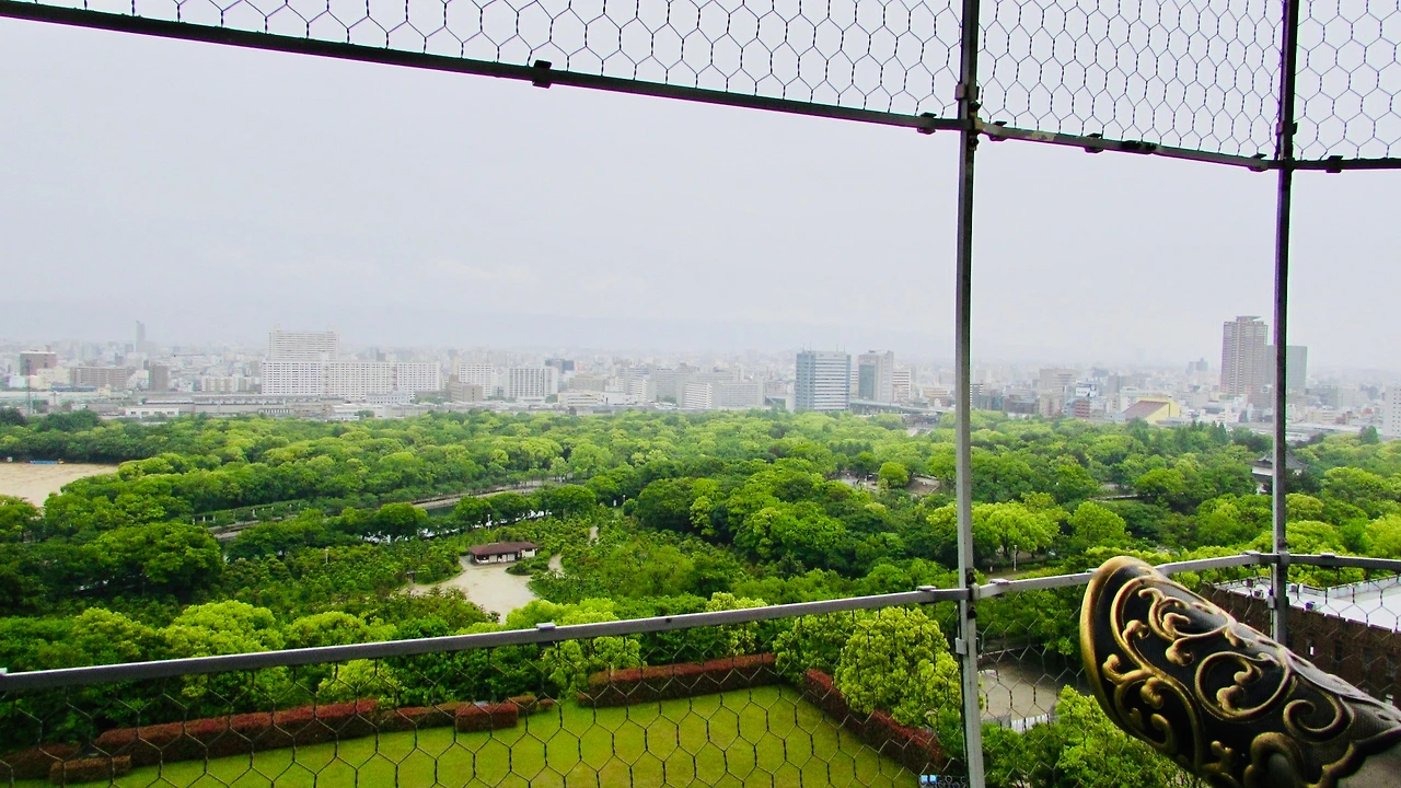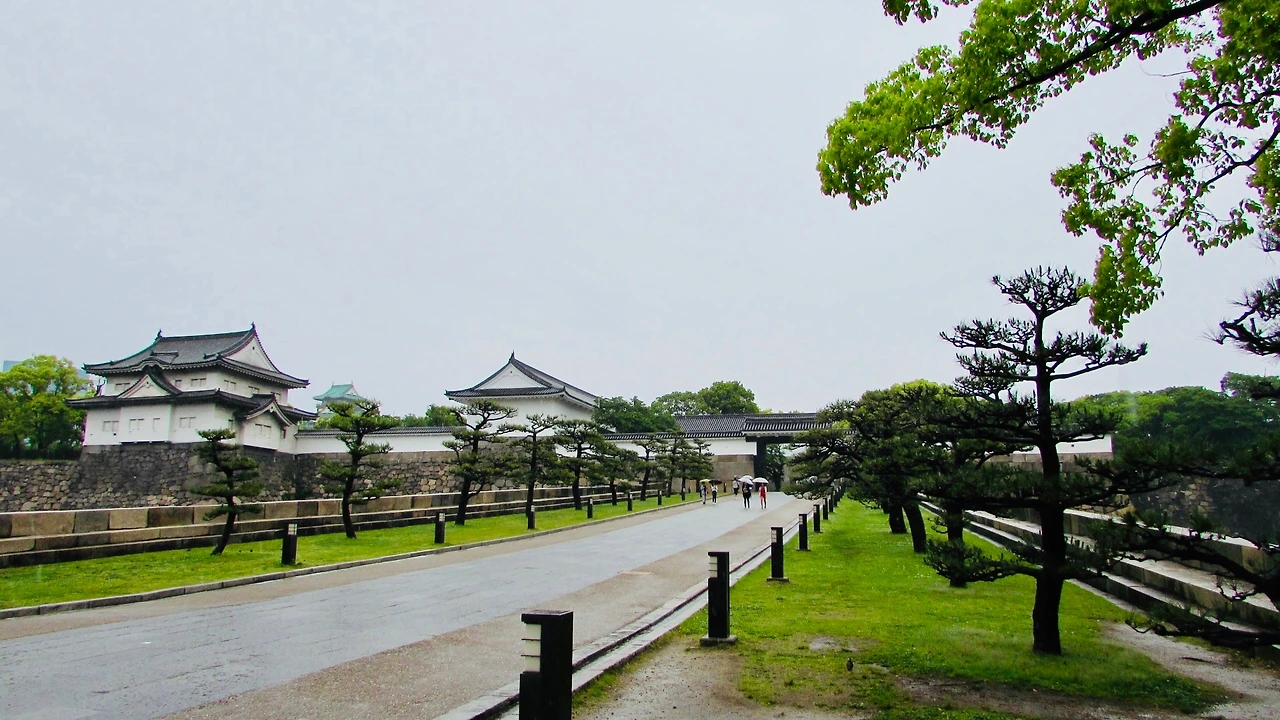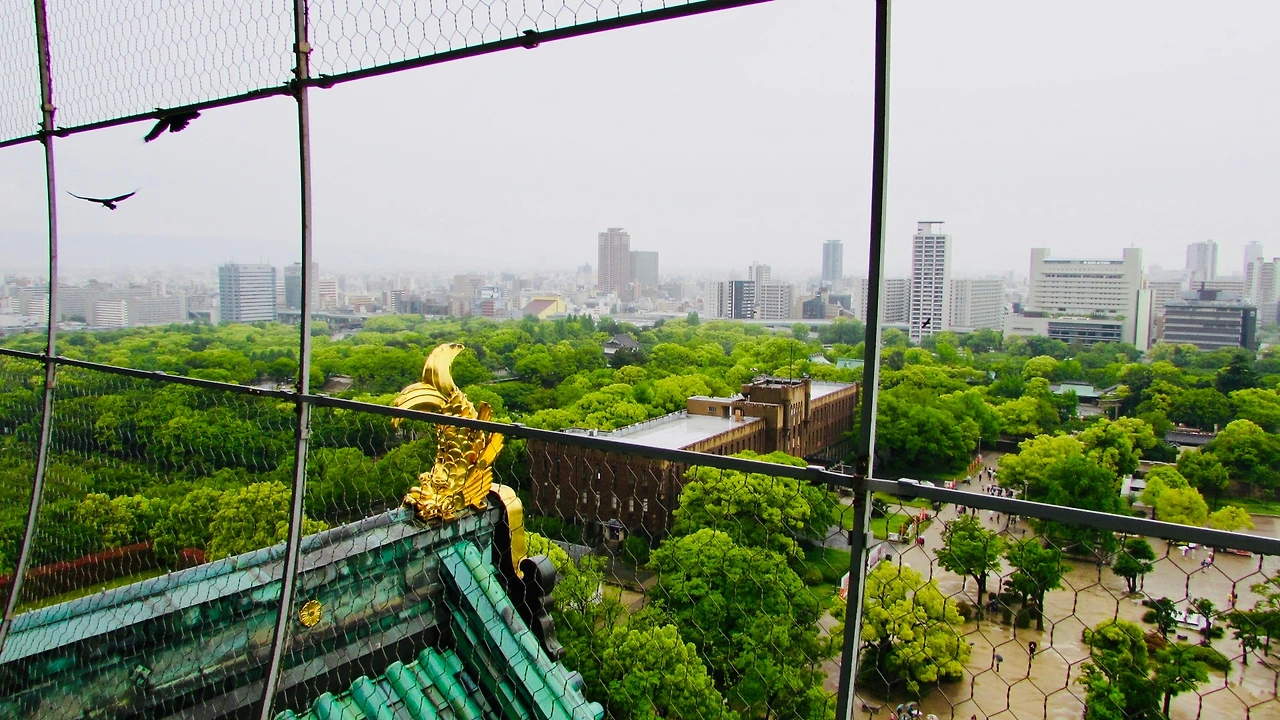 그리고 흐린 하늘 아래 오사카 성 공원 일대가 파노라마처럼 펼쳐졌다. 그리고 까마귀들이 맴돌기 시작했고 비는 계속 내리고 있었다.