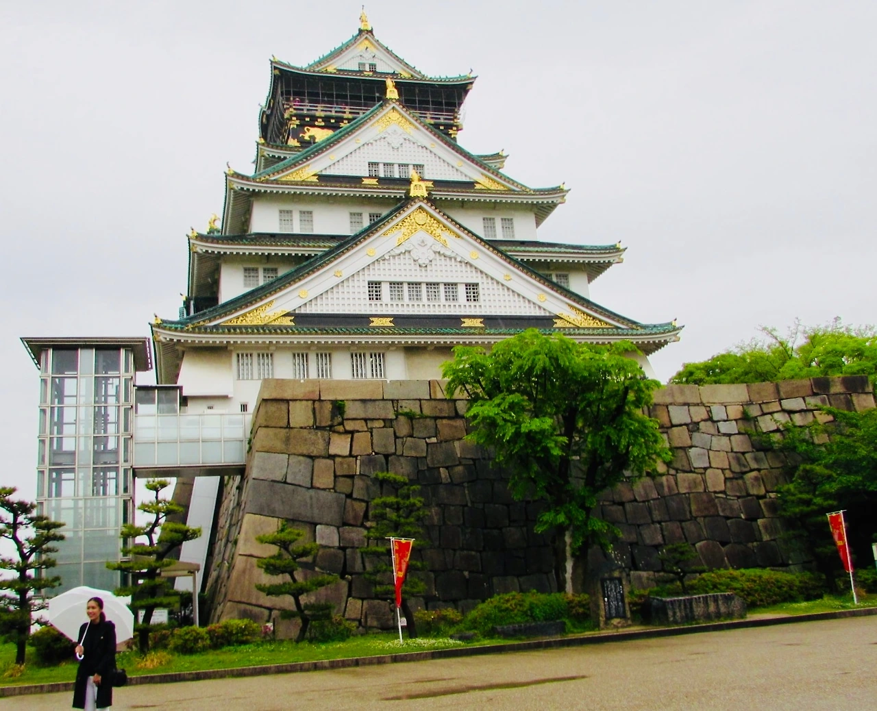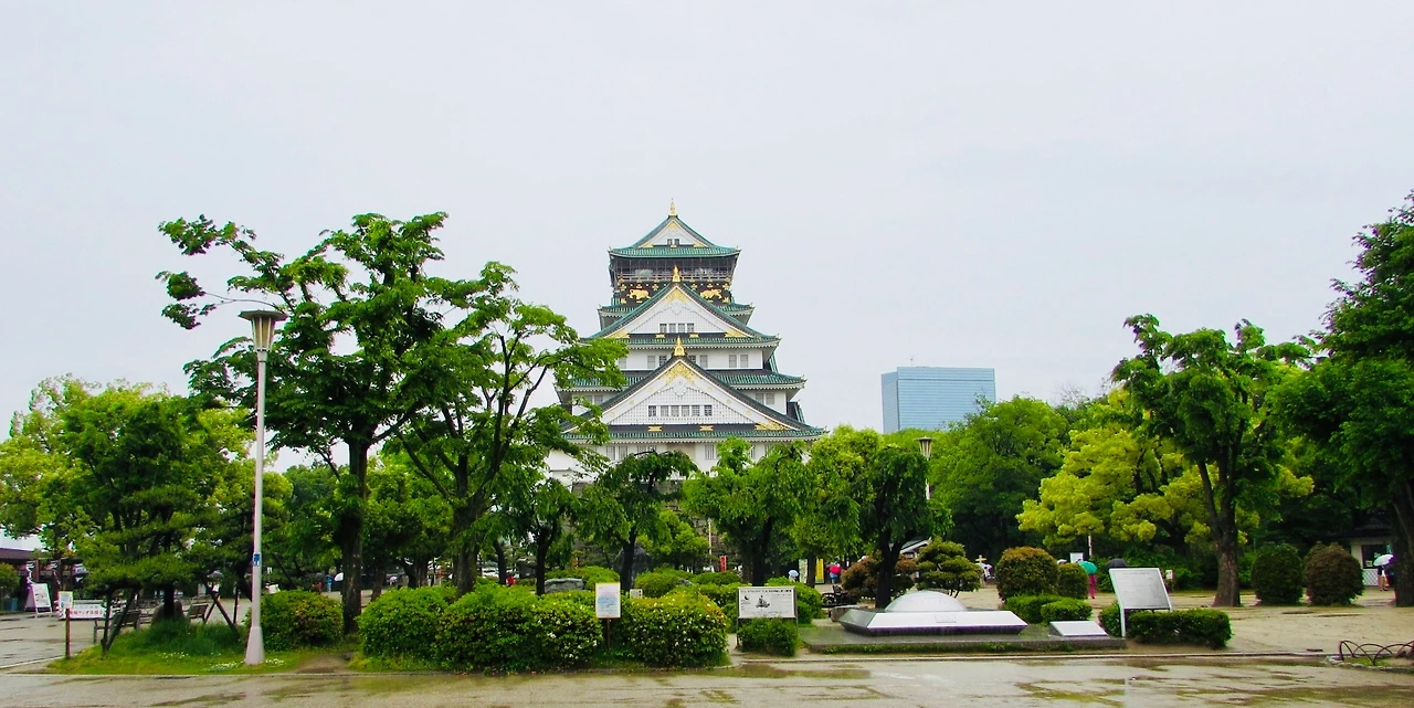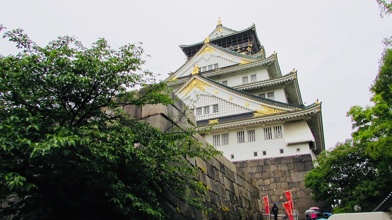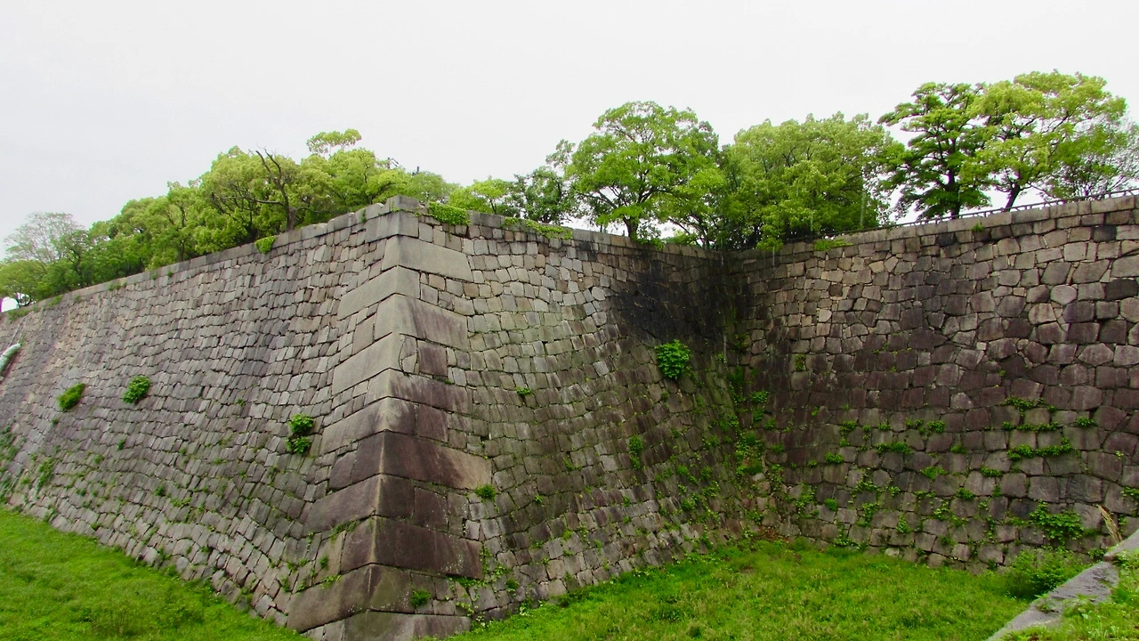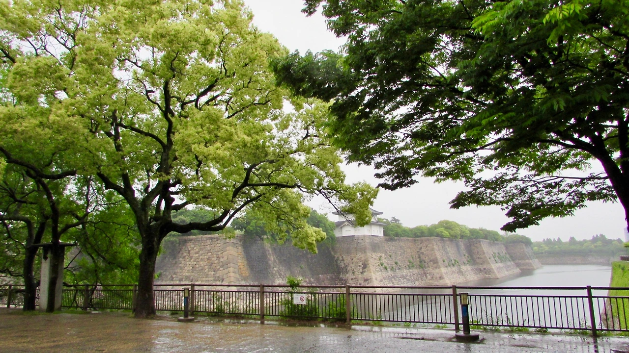 굵은 빗발 속에 바라보는 오사카 성의 석벽은 견고해 보였다.