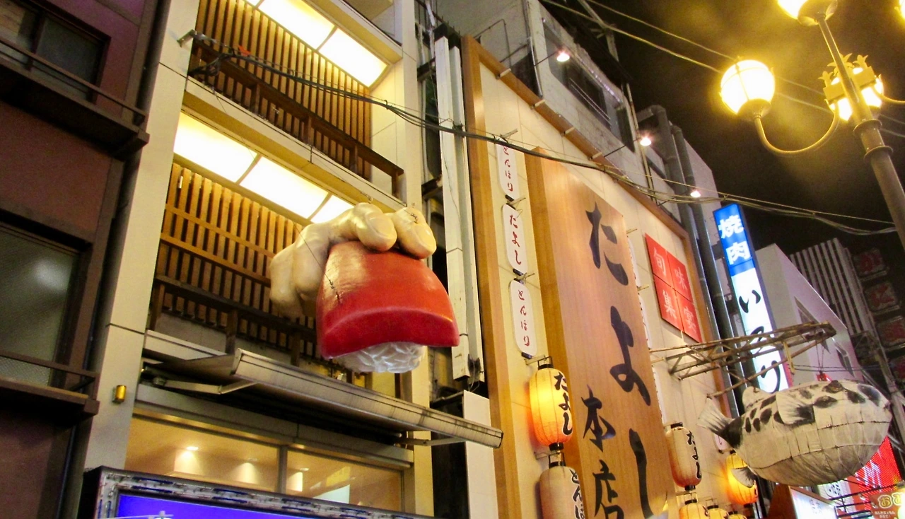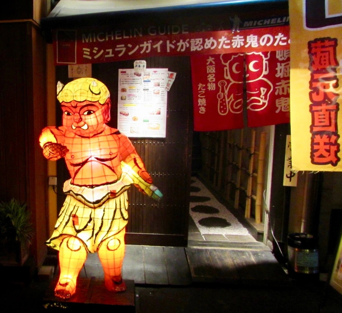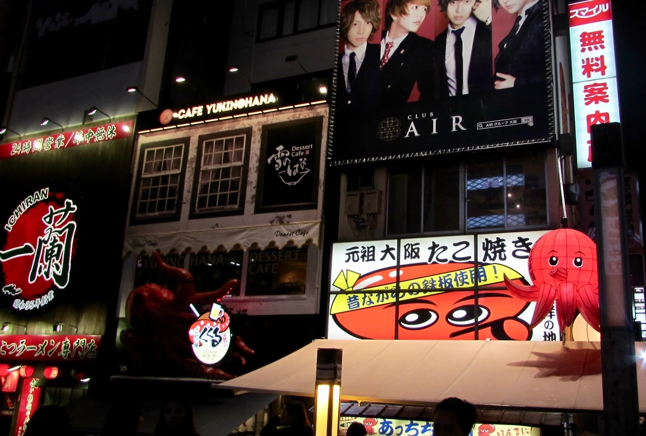 그리고 초록색의 형광빛 테두리를 두른 도톤보리 유람선이 천천히 지나갔다. 나는 하천 도로를 따라 걸어가자 온몸이 붉은색으로 치장된 문어가 사람들을 유혹하고 있었다. 바로 그 유명한 '타코야키'를 파는 곳이었다.
